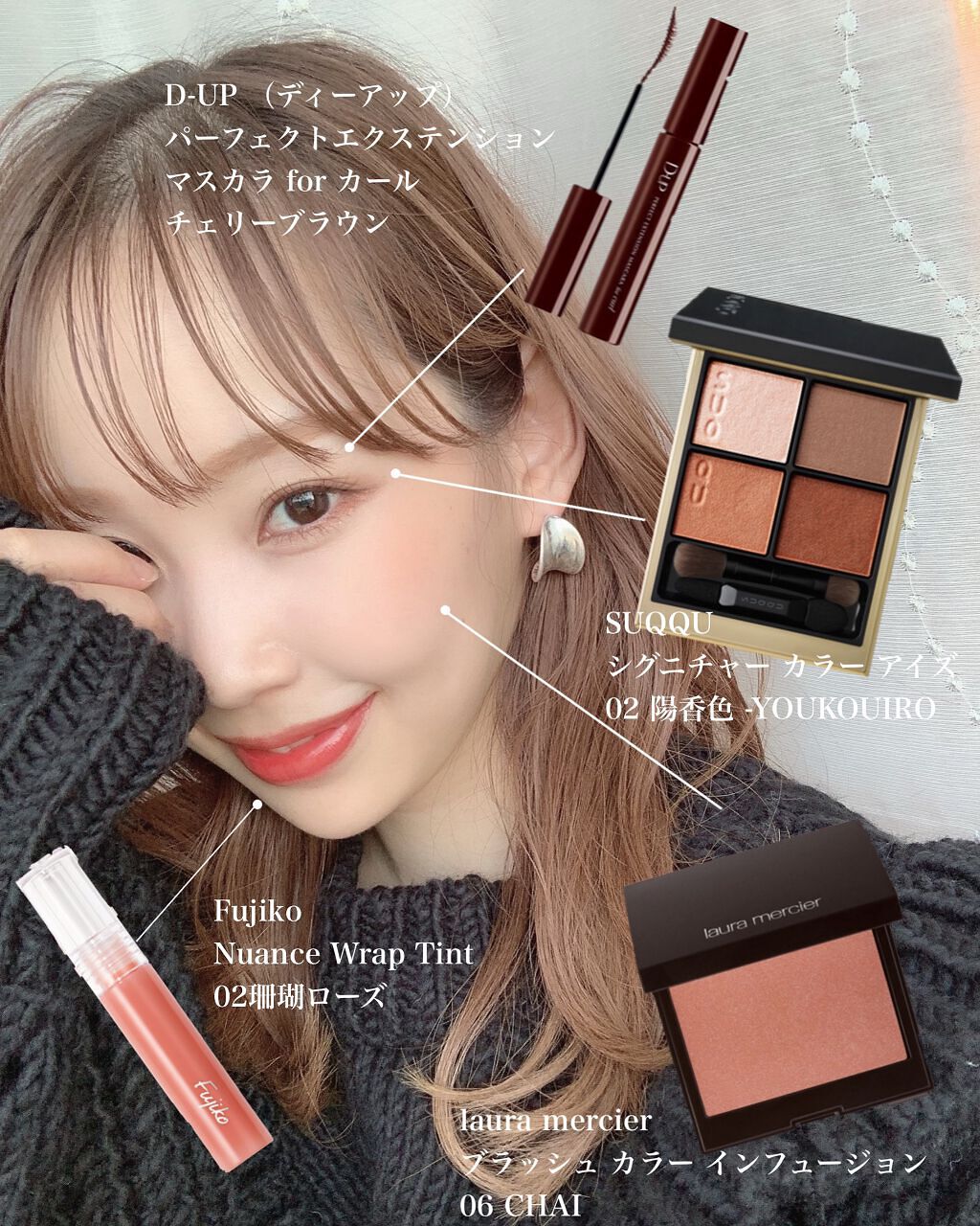 ブリリアージュの新作アイシャドウの中でもお気に入りのカラーを組み合わせてオレンジ〜イエローのグラデーション。 涙袋とアイホール中央は相変わらずアイムミミのスティックアイシャドウが好き。1000円ちょいだし買って良かったコスメ🥰 そして秋といえばSUQQUの金銀杏👆🏻シアーなオレンジブラウンでイエベ推しカラー。