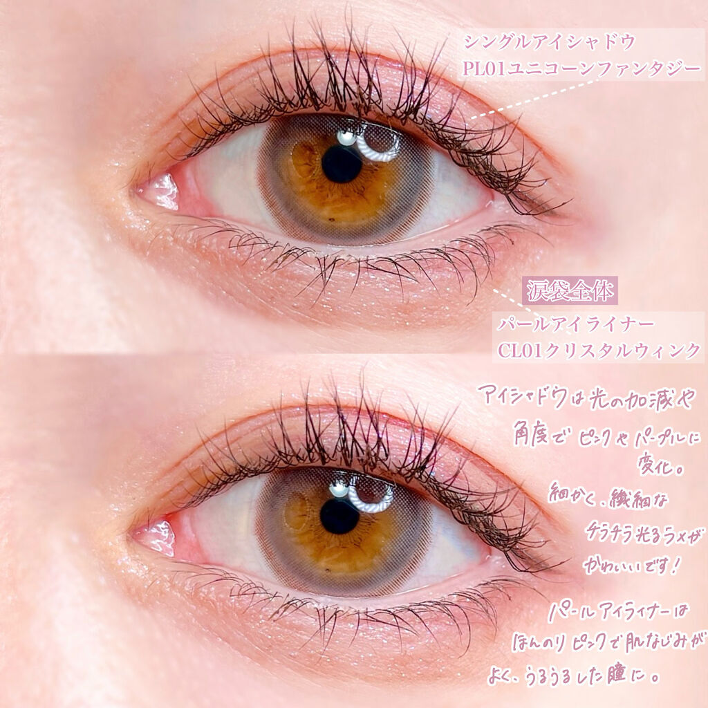 - 限定発売。大人の肌に浮かずになじみ、ロマンティックなきらめきを楽しむ、「ユニコーンカラーの透けラメシャドウ」、「うるみ目アイライナー」、「星降るネイル」の3品セットです。