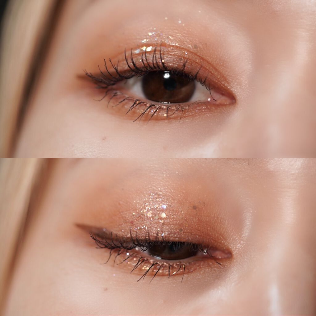 マットなレッドブラウンと多色ラメ🤩!!✨マスカラはブラック×ブラウンで👀💕✨私の好きな組み合わせ\♡/"マット2色で簡単グラデーションをして指で多色ラメを重ねる❕✨涙袋には、小さめのチップで涙袋中央だけにちょん。たっぷりめにのせるのが好き😍💓...