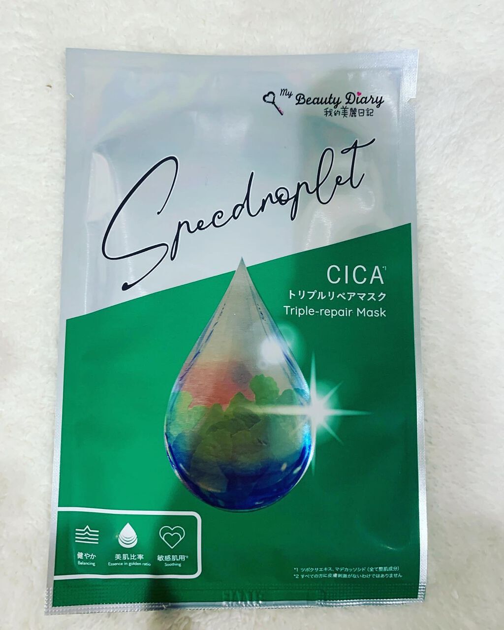 - 我的美麗日記からCICAマスク登場!! 環境ストレスに対抗する植物- CICA*1×ラミナリアヒペルボレア*2 ツボクサ*1と高純度のマデカッソシド*1をプラスし、肌荒れを防ぎます。 希少植物褐藻*2のチカラで乾燥等の外的刺激から守り、キメの整った肌へ整えます。 健やか Balancing 過酷な環境下で成長を繰り返す、スイスアルプスの高山植物由来成分*3を配合。外部ストレスからお肌を守り健やかに保ちます。 敏感肌用*4 Soothing 6 種類の天然由来ハーブエキス*5を配合した美容液で、ゆるぎがちな肌に潤いを届け、優しく守り続けます。 2:8美肌比率 Essence in golden ratio 脂質と水分のバランスを、独自の""美肌比率""で調合し、肌を健やかに保ちます。多重エマルジョン技術で閉じ込め、角質層まで届けます。 ◆我的美麗日記のこだわり◆ パラベン、アルコールを配合していません。また、鉱物油、色素、蛍光剤を使用していません。 *1ツボクサエキス、マデカッソシド(全て整肌成分)*2ラミナリアヒペルボレアエキス(整肌成分)*3ロドデンドロンフェルギネウムエキス(整肌成分)*4すべての方に皮膚刺激がないわけではありません*5イタドリ根エキス、オウゴン根エキス、ローズマリー葉エキス、チャ葉エキス、カンゾウ根エキス、カミツレ花エキス(全て整肌成分) 使い方 事前に洗顔後に化粧水でお肌を整えます。 1、袋からマスクを取り出しお顔全体に広げる。白いプラシートははがす。 2、10分経過後にマスクをはがす。時間に余裕がある場合は20~30分置いていただくとよりお肌に潤いを与えます。 3、お顔に美容液が残っている時は、指先で軽くマッサージしながらなじませる。※水で洗い流す必要はありません。マスクケア後は乳液やクリームなどで普段のお手入れを行ってください。