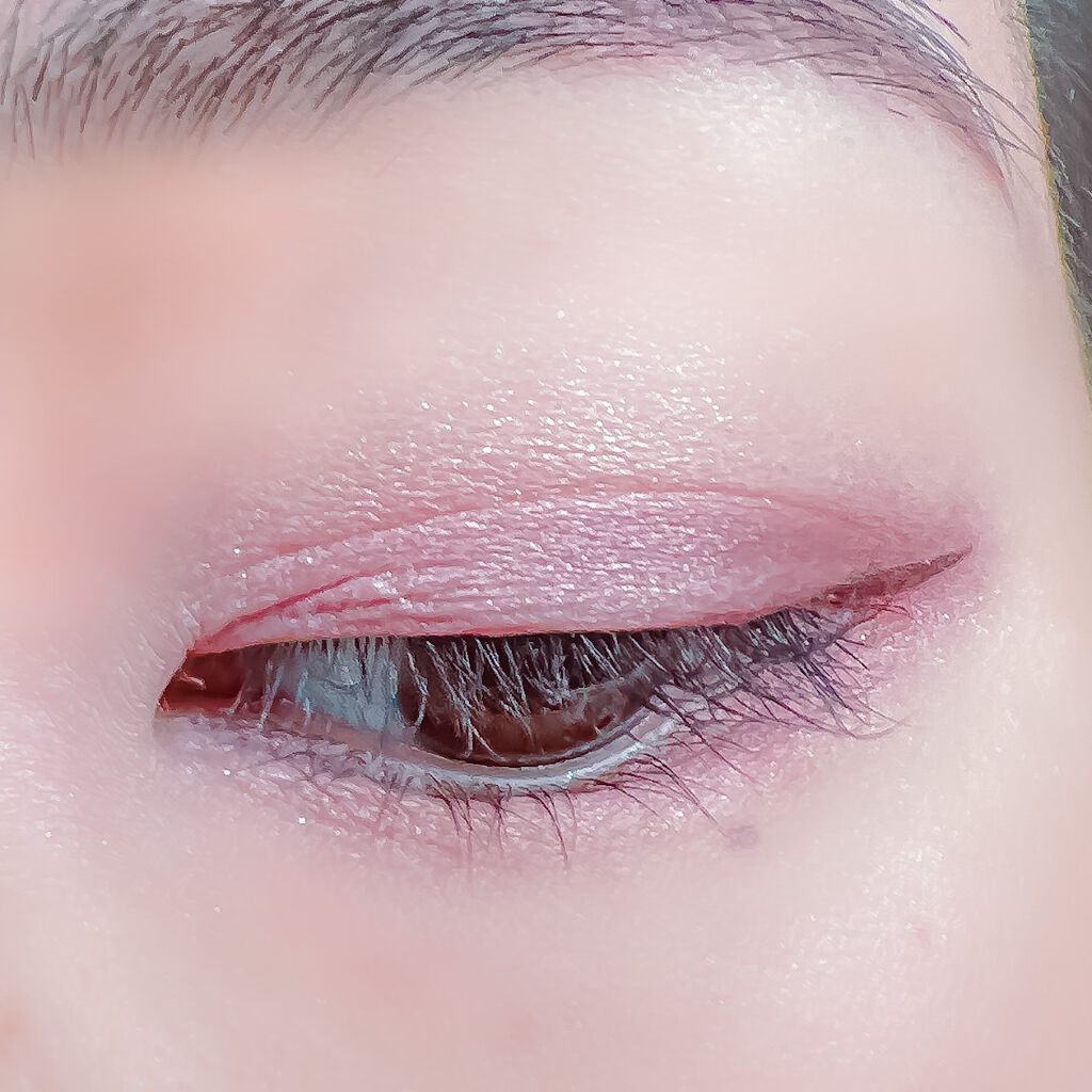ベースに右上、目頭から黒目上に真ん中、黒目〜目尻に右下を、左上を目頭にくの字に塗ってもらいました✨ ピンクサクラよりもクールな感じで、目で見た色より私の肌では紫っぽく発色しました😍 上2つはラメはぎっしりでときめく💓 ブラウンメイクがとても苦手だけれどこれならブラウンメイク出来そう👌(かなり紫寄りですが) くすみ感は強いので苦手な方は厳しいかも…(特に真ん中) クールな印象になるので大人顔さん向けor大人顔になりたい方向けのイメージです✨