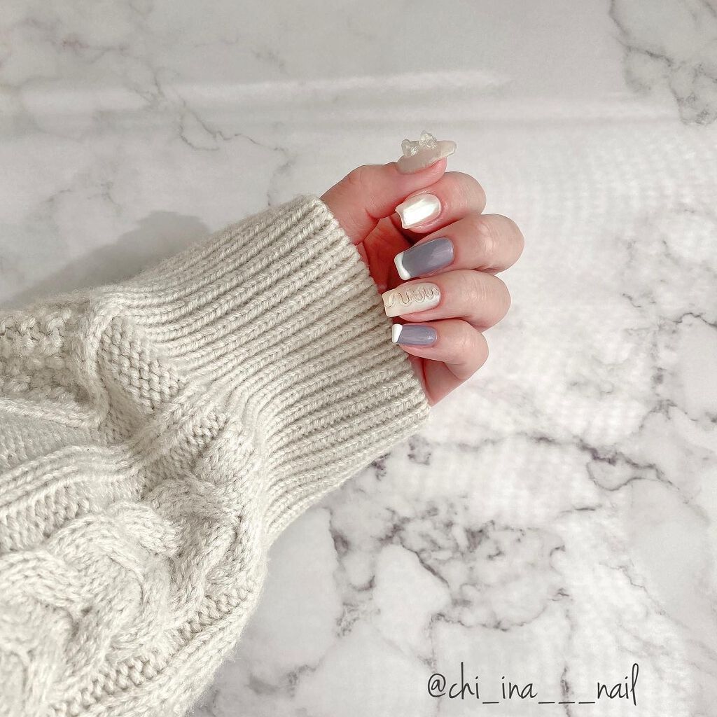 ネイルタウンのアイシングジェルは高粘度ですが扱いやすくて爪楊枝で簡単に描けます🙌 ホメイさんのコンテストで頂いたくすみグリーンのencourageを使いたくてメインの薬指にはそのまま、他の指はグレーと混ぜてみました🥰 常に絶妙グレーを探しているのですがメインの色をちょっと混ぜるのもいいなぁ〜𓂃 𓈒𓏸❁⃘