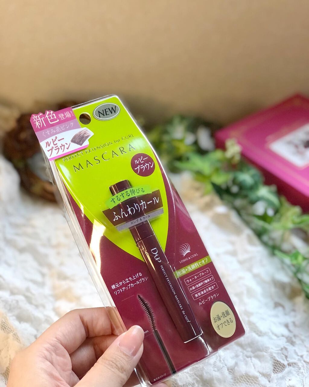 ふんわりキープワックスがバリッと固めず上向きまつげをキープ ルビーブラウンはくすみピンクを忍ばせた甘さを押さえたブラウンで目元が一気に華やかに✨ お湯でスルッと落ちるもの嬉しい😆🙌