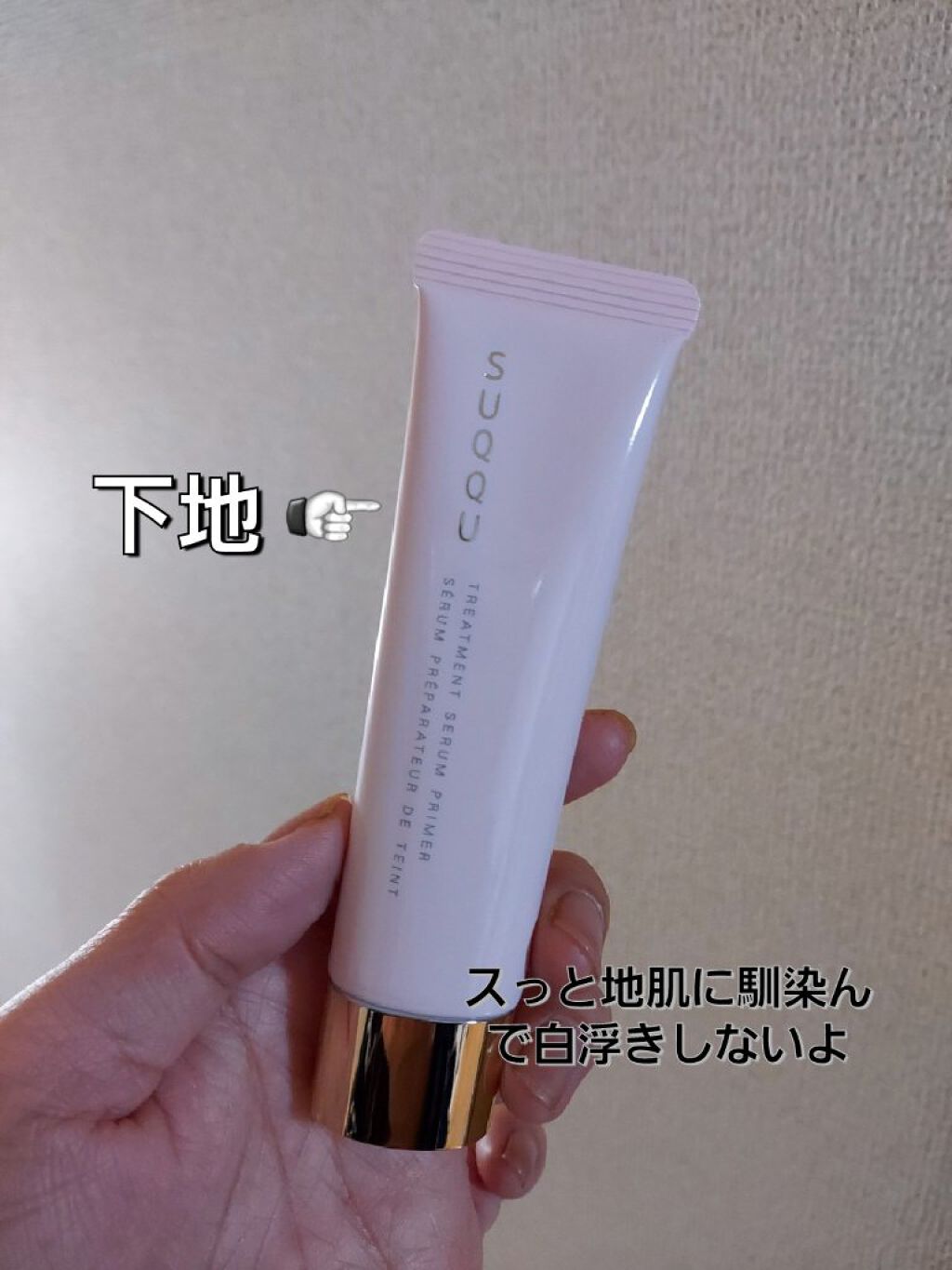 ツヤを仕込むに最適な下地🌿白みピンクのプライマーがツヤ肌に導いてくれますSUQQU💫トリートメントセラムプライマーつねに適したうるおいの膜で満たしぴったりと肌になりすます。うるおいと艶を仕込んで、SUQQUのファンデーションが持つ美しい艶をさ...
