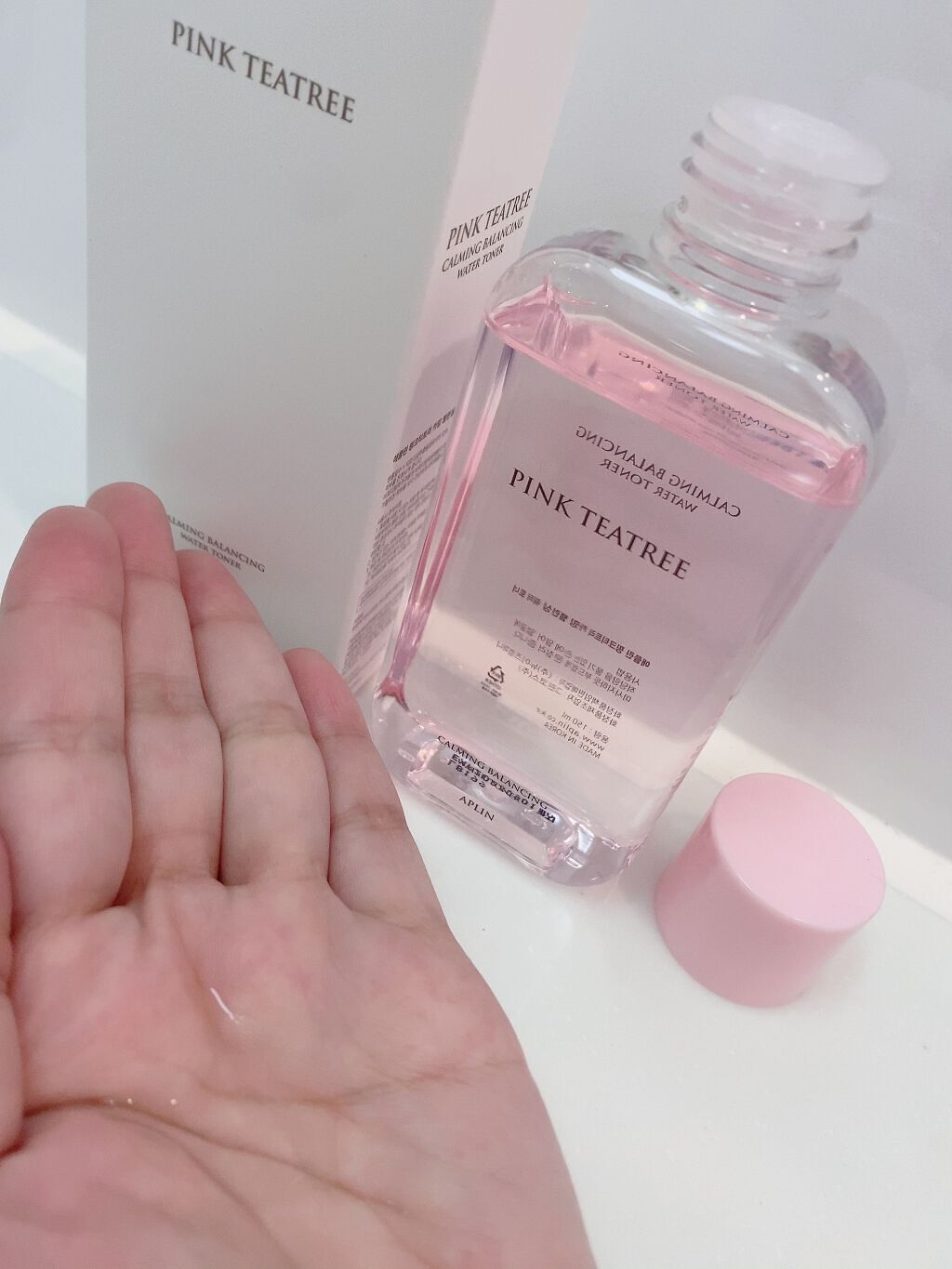 ピンク色がかわいいピンクティーツリートナーのご紹介です☘️💓 ✔︎ティーツリーやツボクサ成分 (CICA)配合。ニキビや肌荒れに鎮静効果のあるトナー。 お肌がゴクゴク飲み込んでいく感じ。保湿感もしっかり感じられる◎