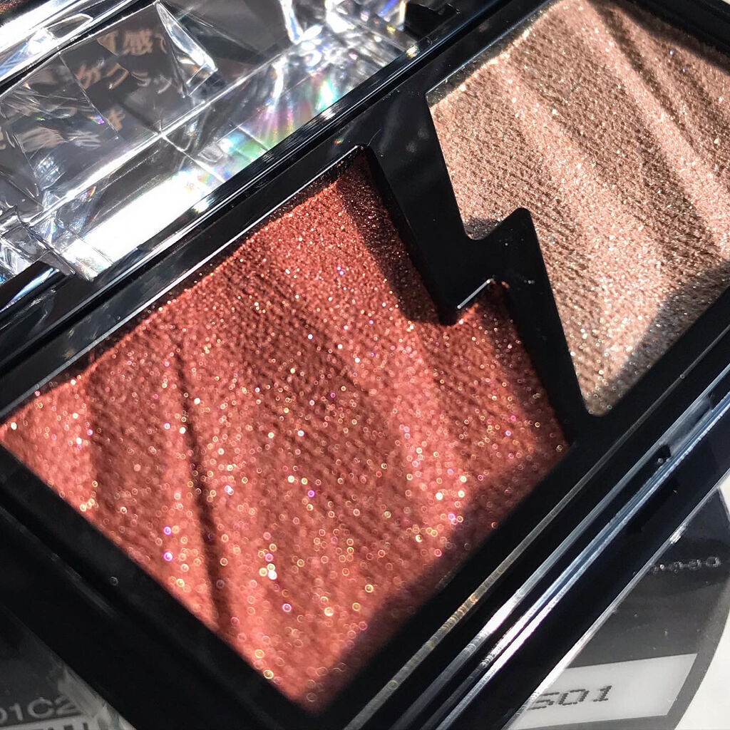 - 質感の違う2つの輝きで火花がクラッシュしたような発光感のある目元印象をつくるアイシャドウ。 まぶたにピタッと密着して、大粒ラメも落ちにくい処方設計。 繊細なカラーパールがきらめくエレクトリカルカラーと存在感のある大粒グリッターでまぶしい輝きを演出するフラッシュグリッターの2つの質感を掛け合わせて、輝き自由自在。 目元以外にも頬や鼻筋のハイライトに使える。