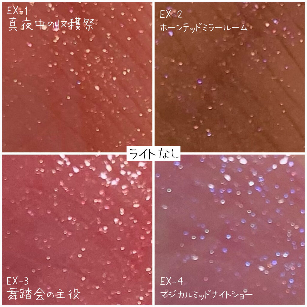 - <01 欲望の塊> テトライソステアリン酸ジペンタエリスリチル、トリ(カプリル酸/カプリン酸)グリセリル、オクチルドデカノール、ラウロイルグルタミン酸ジ(フィトステリル/オクチルドデシル)、ビスアルキル(C16-18)グリセリルウンデシルジメチコン、イソノナン酸イソトリデシル、水添ポリイソブテン、ラウロイルグルタミン酸ジ(オクチルドデシル/フィトステリル/ベヘニル)、パラフィン、合成ワックス、ダイマージリノール酸(フィトステリル/イソステアリル/セチル/ステアリル/ベヘニル)、マイクロクリスタリンワックス、水添マイクロクリスタリンワックス、ヒドロキシステアリン酸エチルヘキシル、トコフェロール、ホホバ種子油、オリーブ果実油、アーモンド油、(エチレン/プロピレン)コポリマー、ポリエチレン、ジメチコン、(+/-)(チタン/酸化チタン)焼結物、マイカ、ラウロイルアスパラギン酸Na、ラウロイルリシン、塩化亜鉛、酸化チタン、酸化鉄、水酸化Al、硫酸Ba、トリイソステアリン酸イソプロピルチタン、酸化スズ、ホウケイ酸(Ca/Al)、合成フルオロフロゴパイト、黄4、黄5、赤104(1)、赤201、赤202 <02 ピンクバナナ> テトライソステアリン酸ジペンタエリスリチル、トリ(カプリル酸/カプリン酸)グリセリル、オクチルドデカノール、ラウロイルグルタミン酸ジ(フィトステリル/オクチルドデシル)、ビスアルキル(C16-18)グリセリルウンデシルジメチコン、イソノナン酸イソトリデシル、水添ポリイソブテン、ラウロイルグルタミン酸ジ(オクチルドデシル/フィトステリル/ベヘニル)、パラフィン、合成ワックス、ダイマージリノール酸(フィトステリル/イソステアリル/セチル/ステアリル/ベヘニル)、マイクロクリスタリンワックス、水添マイクロクリスタリンワックス、ヒドロキシステアリン酸エチルヘキシル、トコフェロール、ホホバ種子油、オリーブ果実油、アーモンド油、(エチレン/プロピレン)コポリマー、ポリエチレン、ジメチコン、(+/-)(チタン/酸化チタン)焼結物、マイカ、ラウロイルアスパラギン酸Na、ラウロイルリシン、塩化亜鉛、酸化チタン、酸化鉄、水酸化Al、硫酸Ba、トリイソステアリン酸イソプロピルチタン、酸化スズ、ホウケイ酸(Ca/Al)、合成フルオロフロゴパイト、黄4、黄5、赤104(1)、赤201、赤202 <03 陽炎> テトライソステアリン酸ジペンタエリスリチル、トリ(カプリル酸/カプリン酸)グリセリル、オクチルドデカノール、ラウロイルグルタミン酸ジ(フィトステリル/オクチルドデシル)、ビスアルキル(C16-18)グリセリルウンデシルジメチコン、イソノナン酸イソトリデシル、水添ポリイソブテン、ラウロイルグルタミン酸ジ(オクチルドデシル/フィトステリル/ベヘニル)、パラフィン、合成ワックス、ダイマージリノール酸(フィトステリル/イソステアリル/セチル/ステアリル/ベヘニル)、マイクロクリスタリンワックス、水添マイクロクリスタリンワックス、ヒドロキシステアリン酸エチルヘキシル、トコフェロール、ホホバ種子油、オリーブ果実油、アーモンド油、(エチレン/プロピレン)コポリマー、ポリエチレン、ジメチコン、(+/-)(チタン/酸化チタン)焼結物、マイカ、ラウロイルアスパラギン酸Na、ラウロイルリシン、塩化亜鉛、酸化チタン、酸化鉄、水酸化Al、硫酸Ba、トリイソステアリン酸イソプロピルチタン、酸化スズ、ホウケイ酸(Ca/Al)、合成フルオロフロゴパイト、黄4、黄5、赤104(1)、赤201、赤202 <04 パンプキンワイン> テトライソステアリン酸ジペンタエリスリチル、トリ(カプリル酸/カプリン酸)グリセリル、オクチルドデカノール、ラウロイルグルタミン酸ジ(フィトステリル/オクチルドデシル)、ビスアルキル(C16-18)グリセリルウンデシルジメチコン、イソノナン酸イソトリデシル、水添ポリイソブテン、ラウロイルグルタミン酸ジ(オクチルドデシル/フィトステリル/ベヘニル)、パラフィン、合成ワックス、ダイマージリノール酸(フィトステリル/イソステアリル/セチル/ステアリル/ベヘニル)、マイクロクリスタリンワックス、水添マイクロクリスタリンワックス、ヒドロキシステアリン酸エチルヘキシル、トコフェロール、ホホバ種子油、オリーブ果実油、アーモンド油、(エチレン/プロピレン)コポリマー、ポリエチレン、ジメチコン、(+/-)(チタン/酸化チタン)焼結物、マイカ、ラウロイルアスパラギン酸Na、ラウロイルリシン、塩化亜鉛、酸化チタン、酸化鉄、水酸化Al、硫酸Ba、トリイソステアリン酸イソプロピルチタン、酸化スズ、ホウケイ酸(Ca/Al)、合成フルオロフロゴパイト、黄4、黄5、赤104(1)、赤201、赤202 <05 ダークフィグ> テトライソステアリン酸ジペンタエリスリチル、トリ(カプリル酸/カプリン酸)グリセリル、オクチルドデカノール、ラウロイルグルタミン酸ジ(フィトステリル/オクチルドデシル)、ビスアルキル(C16-18)グリセリルウンデシルジメチコン、イソノナン酸イソトリデシル、水添ポリイソブテン、ラウロイルグルタミン酸ジ(オクチルドデシル/フィトステリル/ベヘニル)、