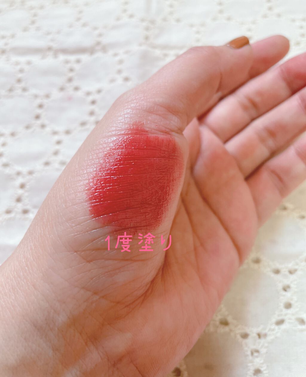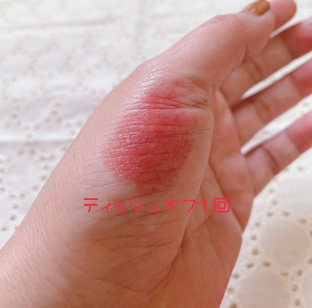 速乾タイプなのに唇が荒れにくいのもポイントです。 速乾タイプなので素早く乾き、色落ちのしにくさを発揮します。 このリップをくちびるにのせるだけで今っぽいお顔に仕上げてくれます♡ 私は保湿リップを塗ってから使用しています♡ かなりの高発色なので付けすぎ注意⚠️ 私は上唇、下唇の真ん中に塗って指でポンポンと馴染ませています♡ ちょっと塗り方にコツが必要ですが慣れればキレイに塗れるようになります♡