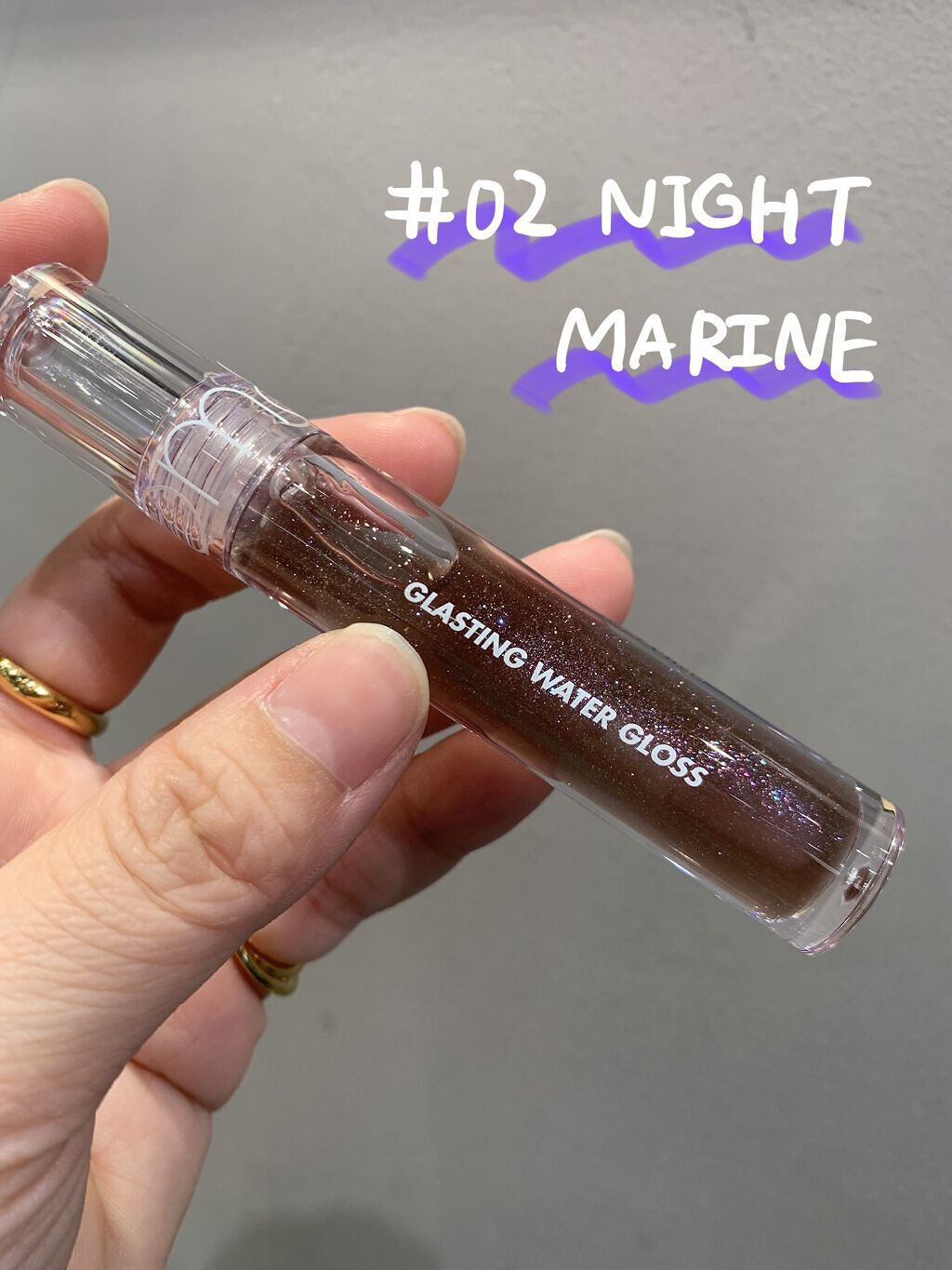 rom&ndのグラスティング ウォーターグロス#02 ナイト・マリンで叶えよう! ちゅるんとした唇に輝きが欲しいと思っている人には最適です🤍 このグロスは、一度塗るだけで唇がぷるんと膨らんで、ラメがキラキラ輝きます。 また、他のリップと組み合わせると、より可愛いです。 #02ナイト・マリンは、いろんなラメが入っているので、どんなお洋服とも合いそうです🥺 キラキラな輝きで、あなたの魅力を最大限に引き出しましょう!