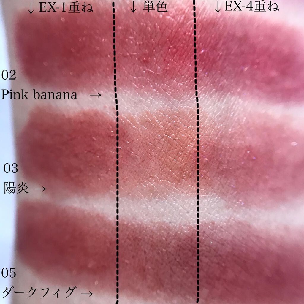 透明感が爆誕するブルベ向きカラー!ピンクも明るめで全体的に使いやすく早速お気に入り! このアイシャドウプチプラの中でお気に入りなのでこれからも新作でたら買ってしまうと思いますw ぷにっと質感が病みつきなバズりフェイスカラーのローズピンク系! 02はどちらかと言うとブルベ向きカラーではあるもののなじみがよく万人に使えるカラー!
