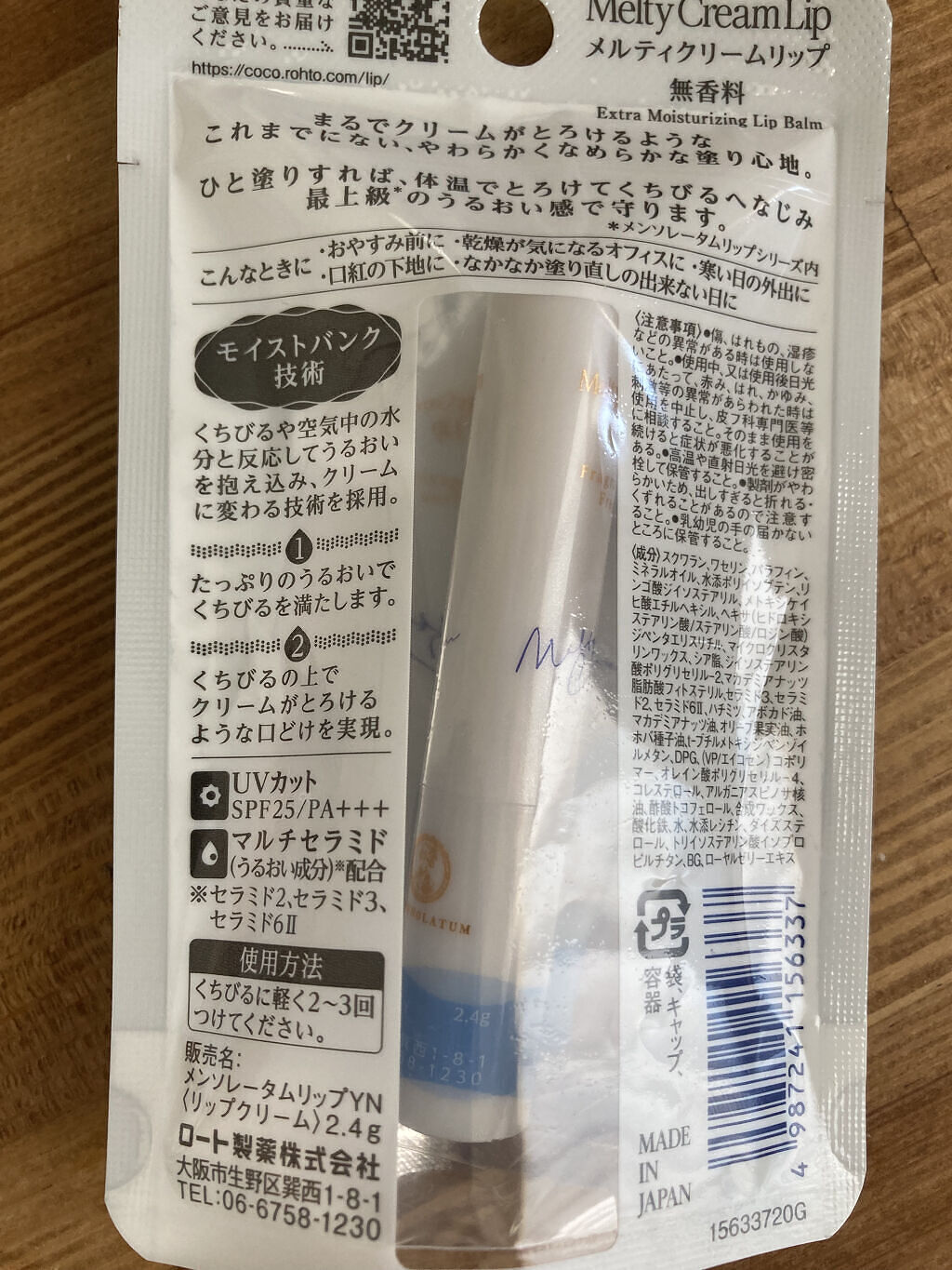 - くちびるや空気中の水分と反応してうるおいを抱え込み、クリームに変わる「モイストバンク技術」を採用。まるでクリームがとろけるような、これまでにない、やわらかくなめらかな塗り心地。ひと塗りすれば、体温でとろけてくちびるへなじみ、最上級*のうるおい感で守ります。 UVカット(SPF25/PA+++)。マルチセラミド(うるおい成分)※配合。*:メンソレータムリップシリーズ内※:セラミド3、セラミド2、セラミド6II