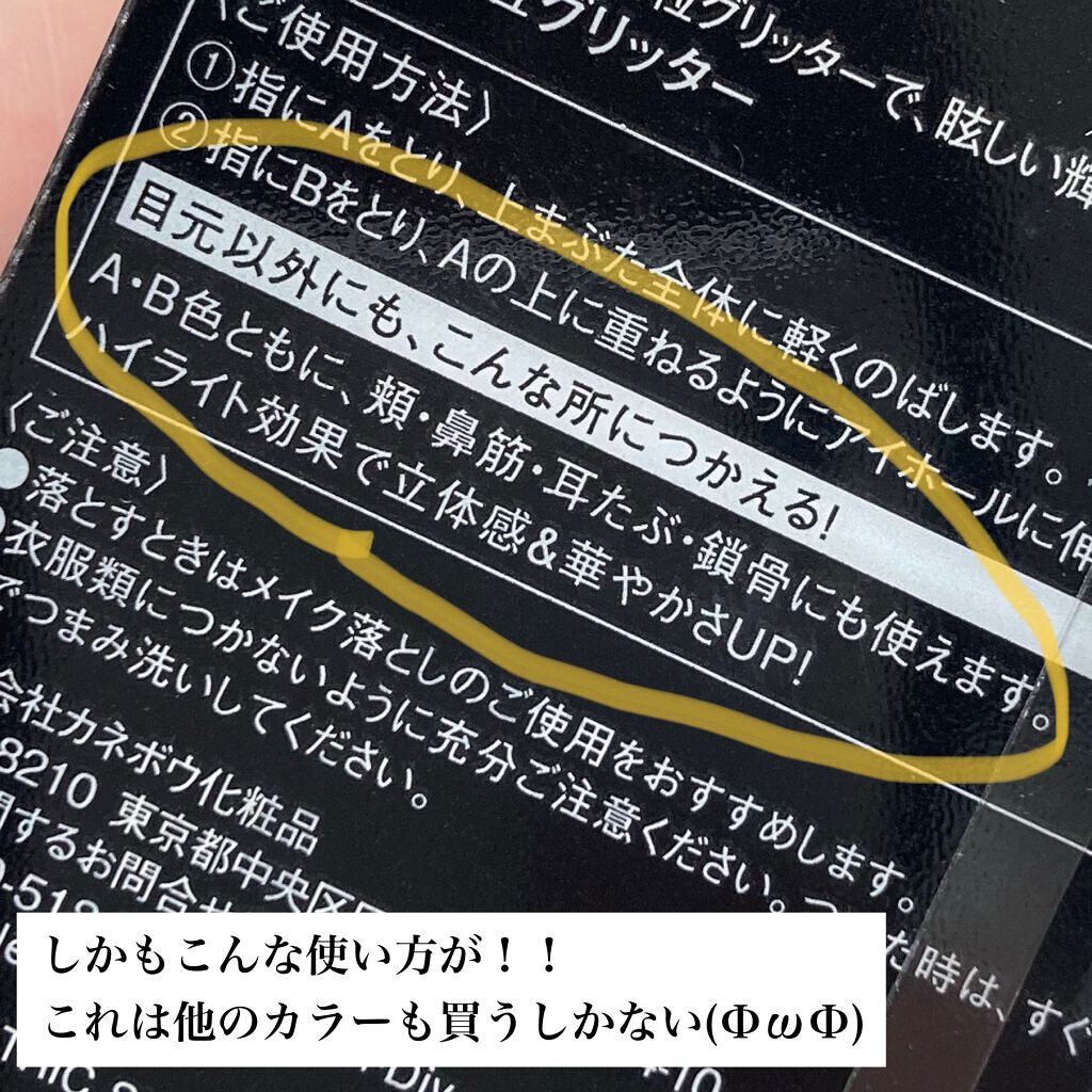 - 質感の違う2つの輝きで火花がクラッシュしたような発光感のある目元印象をつくるアイシャドウ。 まぶたにピタッと密着して、大粒ラメも落ちにくい処方設計。 繊細なカラーパールがきらめくエレクトリカルカラーと存在感のある大粒グリッターでまぶしい輝きを演出するフラッシュグリッターの2つの質感を掛け合わせて、輝き自由自在。 目元以外にも頬や鼻筋のハイライトに使える。