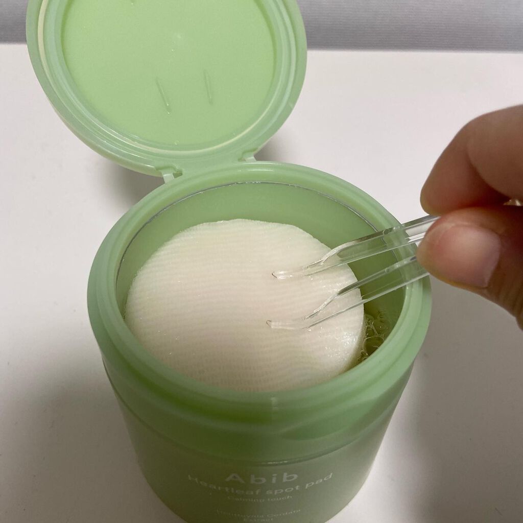 🌿ドクダミスポットパッドカーミングタッチ🌿朝の時短スキンケアにおすすめ敏感肌さんでも使えるスキンケアAbibHeartleafspotpadcalmingtouch感想𓃟メッシュ生地のようなパッドで拭き取りとしてもパックとしても使えました...