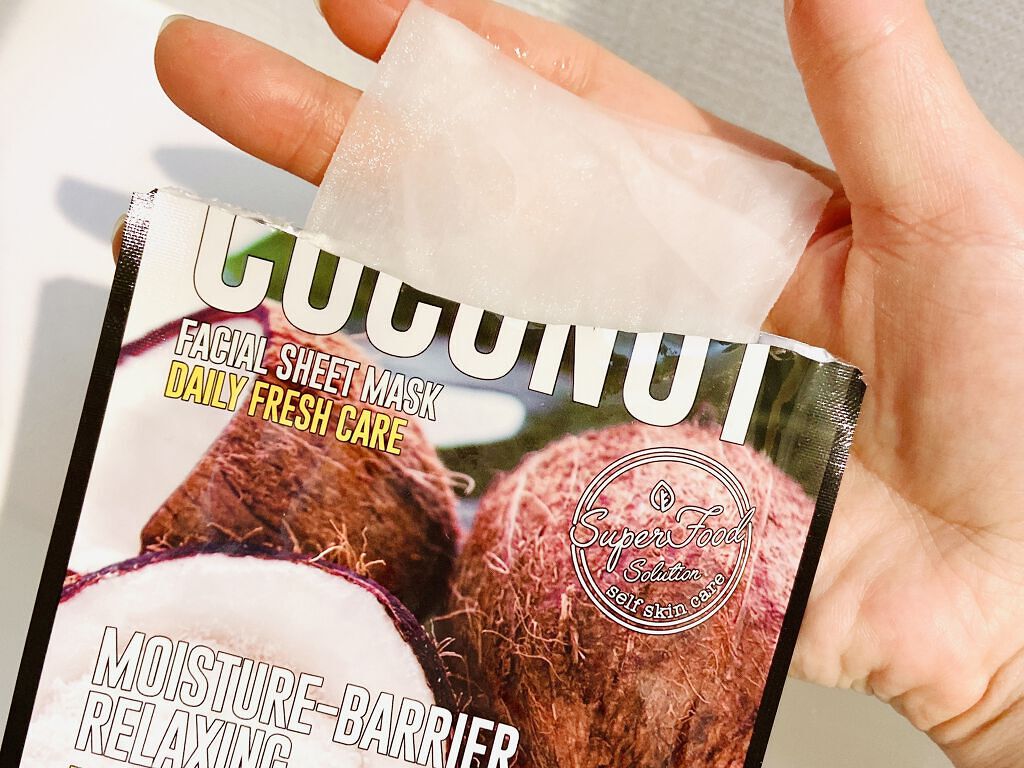 パウチを開けると、とろっと濃厚な美容液がシートにたっぷり染み込んでいます🤲🏻 シートは植物由来の肌に優しいセルロースシートが使用されていて、なんと通常不食布の約10倍の保水力があるそうです🤭💕 確かに推進時間の15分〜20分以上貼ってしまった時でもシートがぷるぷるを保っていました( ⍥ )✨ はがした後は肌がひんやり気持ちよく水分をたっぷり補給できている感じがします😌 香りは3種類とも違いますが使用感は似ていてベタつかないのに、肌がしっとりうるサラに🌟 その日の気分や肌悩みに合わせて14種類のスーパーフードから選べるので気になった方は是非チェックしてみてください👀❤️