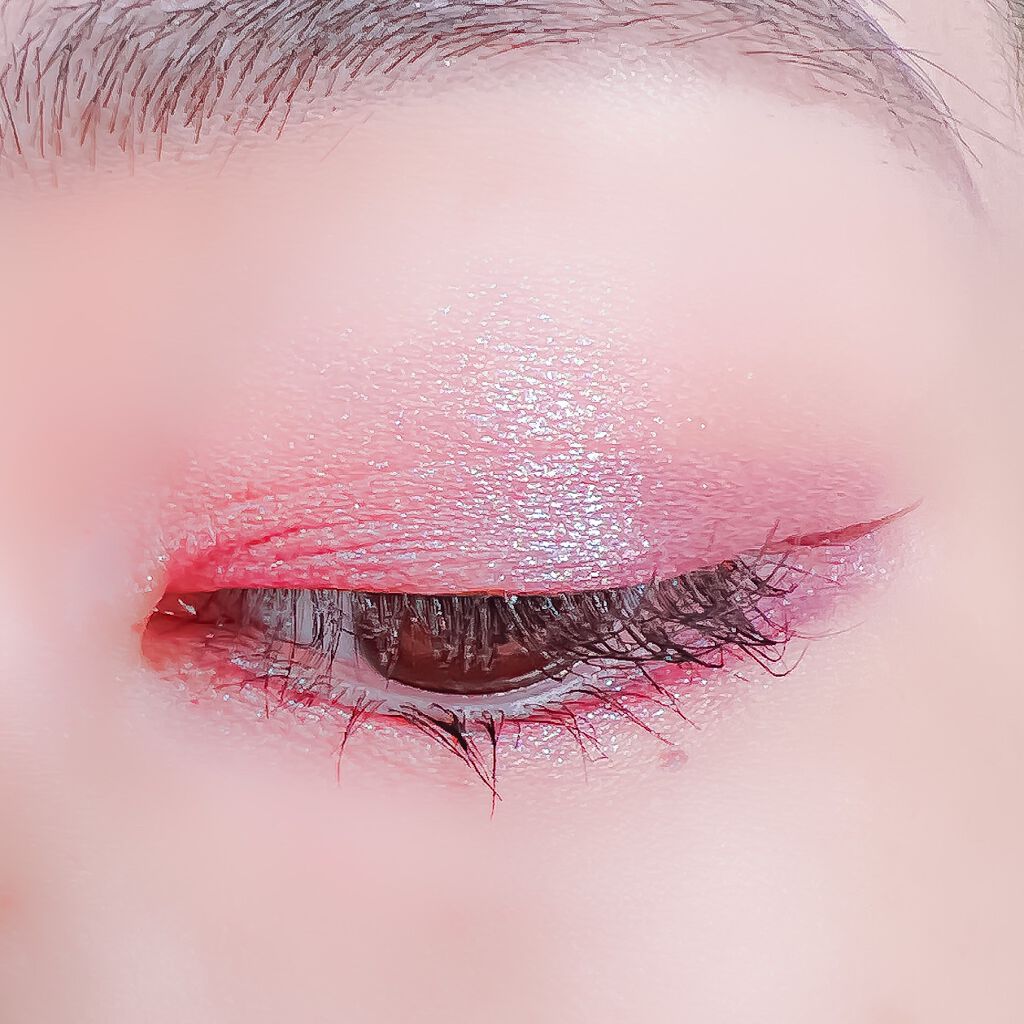 ピンクにグレージュも良いですね👌💗 今日は可愛らしい感じにしてみました💕 上下瞼黒目〜目頭側にラメを塗ってキラキラさせております🤩 目尻はマットのピンクを濃いめに重ねて💗 グレージュのアイライナーと相性◎