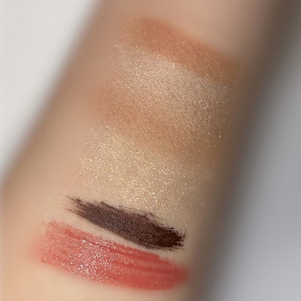 フワッとした質感で、マルチに使えるコスメだと思います! 左のハイライトカラーは、Cゾーンや鼻筋などに使えます◎ 白すぎず肌馴染みのいいベージュカラーで使いやすいです! 右の血色カラーは頬やまぶたなどに使えます◎ 赤すぎずピンクすぎず、使いやすいです! 細い筆でとても使いやすいと思いました! 瞼や涙袋に使えます 多色ラメでとても綺麗です! スウォッチを撮影した後、乾いた状態で指で擦ってみましたが、ラメが落ちることなく密着力が高いと思いました。普段から使えるような綺麗なラメでした! ふたつとも、7月7日から一部店舗で先行発売されているみたいです!! 発売日はグロウリキッドライナーは8月10日 フェイスグロウカラーは10月10日だそうです!