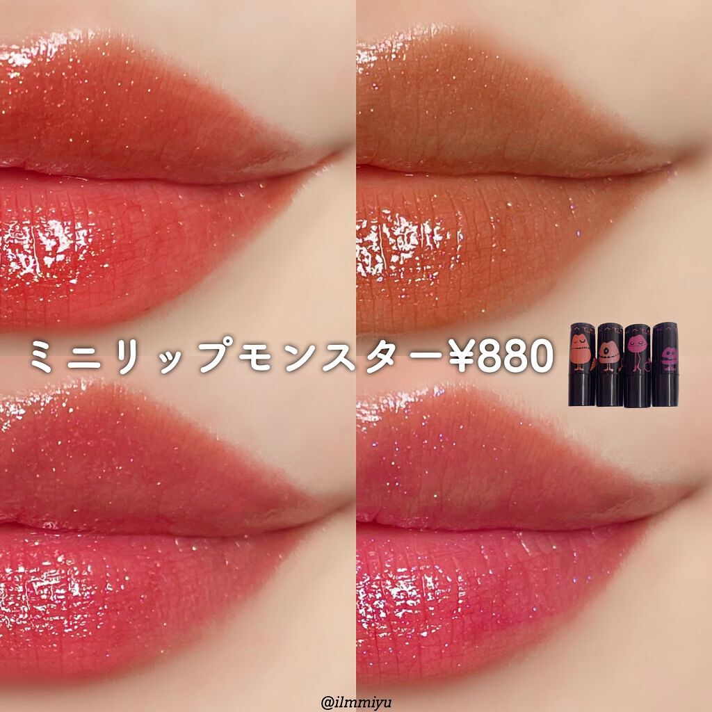 - 落ちにくさも美発色もよくばりたい、つけたての色が長時間持続する人気の口紅リップモンスター。 唇から蒸発する水分を活用して密着ジェル膜に変化する独自技術※で、つけたての色が長時間持続。 高発色&保湿。 ※当社独自の色持ち技術 ■花火のようにまぶしくきらめく 繊細なラメが際立つ限定色 EX-6 ピンクカラー×青ラメ【ロケット花火流星群】 EX-7 オレンジカラー×黄&緑ラメ【100万発の線香花火】 EX-8 レッドカラー×緑ラメ【打ち上げ花火ブランコ】 ■深みレッド系カラーの限定色 EX-9 戦慄の喜笑 (限定色) EX-10 狂気の怒号 (限定色) 【2025クリスマスコフレ】 落ちにくいリップモンスターから、唇の血色感を底上げする ホリデーシーズン限定の熱感ニュアンスベージュ系カラー登場。 EX-11 紅煙宿る贈り物(限定色):ボルドーベージュ系 EX-12 盗まれた1224mの星光(限定色):キャメルベージュ系