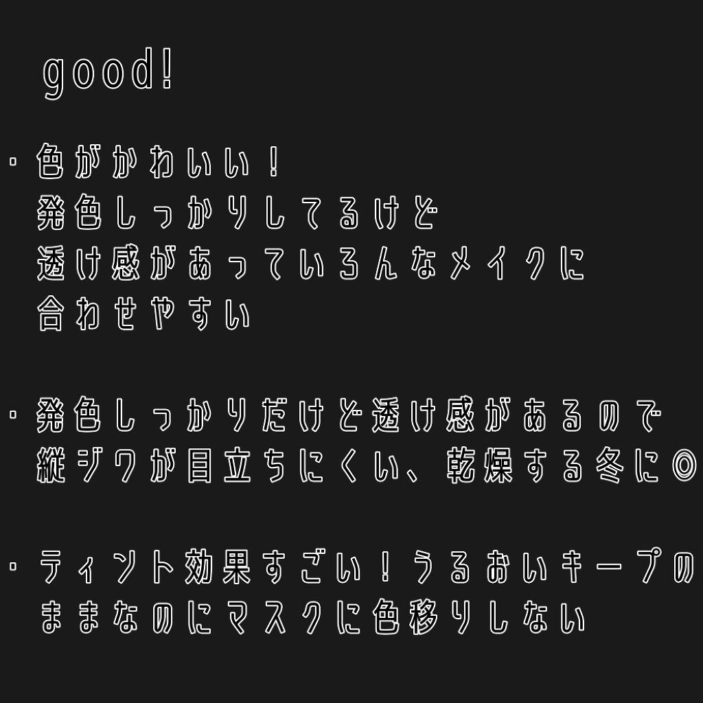 | 口紅・グロス・リップライナーランキング第36位 | シロップのようにとろーりしていて 唇にのせると密着してくれる。じゅわっとした発色とむっちり感が たまらなくよかった⸝⸝⸝♡ | 詳細を見る |