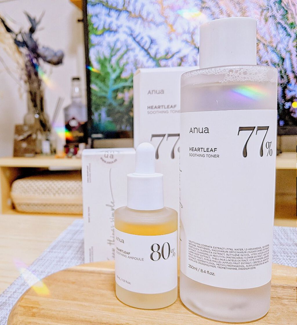 肌質に変化が🥹✨ どちらも鎮静効果抜群のドクダミエキスたっぷりでニキビや肌荒れを抑えてくれる✨ 安心して使える自然由来の肌に優しい成分をたっぷりと詰め込んだ化粧水♡ トナーだけだと保湿力が気になりますがアンプルと合わせて使う事でしっかり保湿でき水分バランスを整えてくれる💗