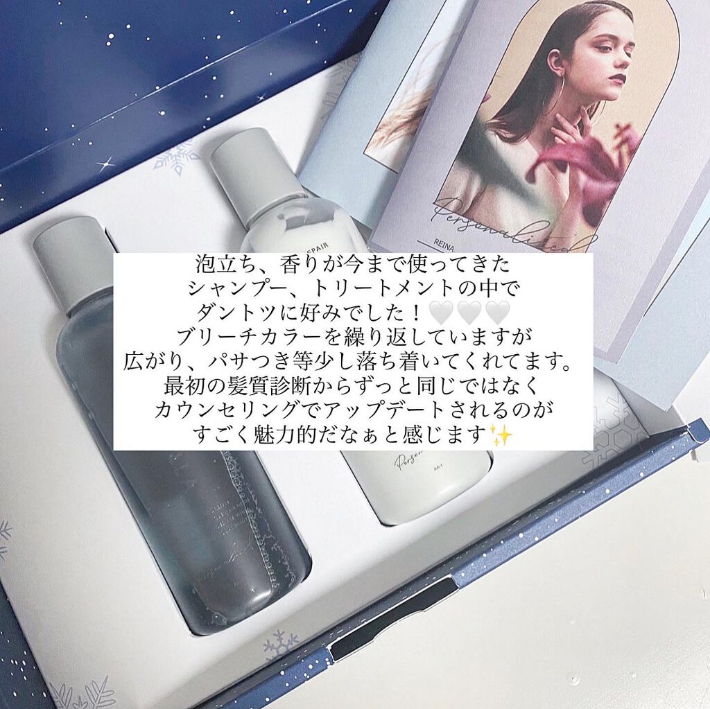- パッケージをリニューアルして登場 オンライン上のカウンセリングで、髪と頭皮に関する質問の回答によって、一人ひとりの複雑な乾燥悩みをケアする成分を配合し、自宅に届けるシャンプー&リペア。新処方「与える・整える・守る」の3ステップからなり、アミノ酸由来の4種のホワイトプロテインで髪に潤いを与えた後、2種のフィトキューティクルで髪の表面を整えます。熱に反応する2種のヒートアクティブ成分がドライヤーやヘアアイロンの熱から髪を守ります。定期コースあり。「シリコーン・パラベン・エタノール*1・鉱物油・石油系界面活性剤・ラウリル硫酸Na・旧表示指定成分」不使用。シャンプー *1 リペアのみエタノール配合