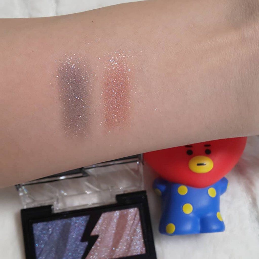 - 質感の違う2つの輝きで火花がクラッシュしたような発光感のある目元印象をつくるアイシャドウ。 まぶたにピタッと密着して、大粒ラメも落ちにくい処方設計。 繊細なカラーパールがきらめくエレクトリカルカラーと存在感のある大粒グリッターでまぶしい輝きを演出するフラッシュグリッターの2つの質感を掛け合わせて、輝き自由自在。 目元以外にも頬や鼻筋のハイライトに使える。