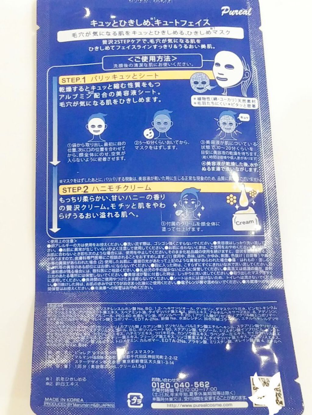 - 毛穴が気になる肌をキュッとひきしめる、ひきしめ(※1)マスクです。 1STEP:シート、2STEP:クリームの贅沢Wケア。アルブミン(※2)配合のパリッキュッとシートが、時間が経つと変化し、毛穴が気になる肌をひきしめ&古い角質や毛穴汚れをオフします。洗い流して、専用のハニモチクリームを塗れば、モチモチうるおい美肌に。 Vラインフェイスを目指す専用クリーム付2STEPスペシャルマスク。 ※1肌をひきしめる ※2卵白エキス