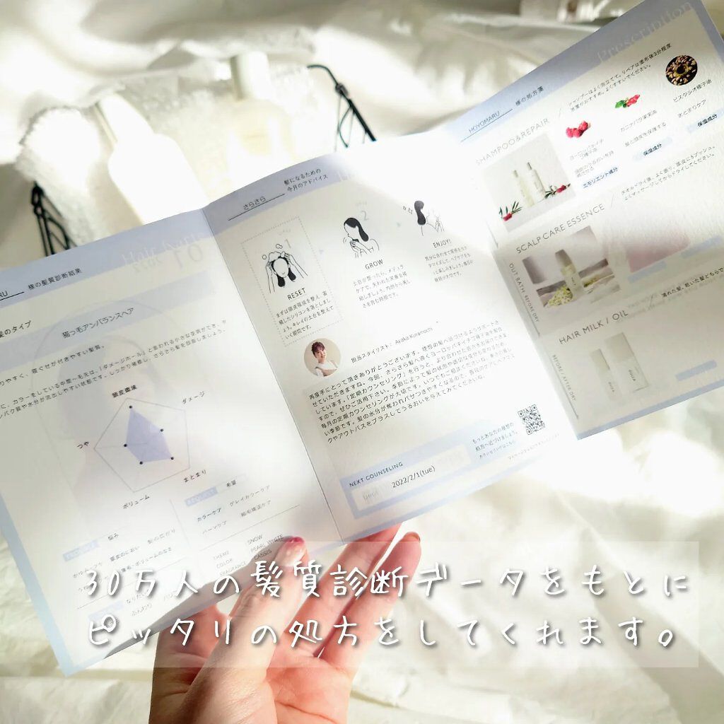香りが香水のようにいい香り。カシス&パチュリの香りなんだけど、カシスとフローラル、少しバニラの深いいい香りがするの。 泡立ちもきめ細やかなで、ロングヘアだとシャンプーを沢山使わなきゃいけないけどヒリツの場合泡立ちが良くて少量でよかった。 ヘアミルクを使うと、パサついた髪が潤い感がでていい感じ。私はヘアミルクを使ってから髪を乾かしてます。