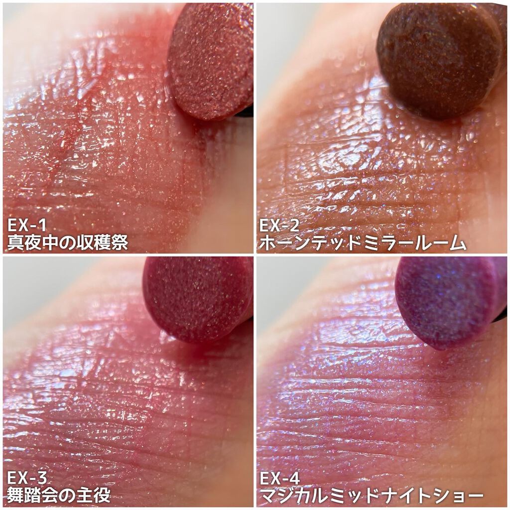 - <01 欲望の塊> テトライソステアリン酸ジペンタエリスリチル、トリ(カプリル酸/カプリン酸)グリセリル、オクチルドデカノール、ラウロイルグルタミン酸ジ(フィトステリル/オクチルドデシル)、ビスアルキル(C16-18)グリセリルウンデシルジメチコン、イソノナン酸イソトリデシル、水添ポリイソブテン、ラウロイルグルタミン酸ジ(オクチルドデシル/フィトステリル/ベヘニル)、パラフィン、合成ワックス、ダイマージリノール酸(フィトステリル/イソステアリル/セチル/ステアリル/ベヘニル)、マイクロクリスタリンワックス、水添マイクロクリスタリンワックス、ヒドロキシステアリン酸エチルヘキシル、トコフェロール、ホホバ種子油、オリーブ果実油、アーモンド油、(エチレン/プロピレン)コポリマー、ポリエチレン、ジメチコン、(+/-)(チタン/酸化チタン)焼結物、マイカ、ラウロイルアスパラギン酸Na、ラウロイルリシン、塩化亜鉛、酸化チタン、酸化鉄、水酸化Al、硫酸Ba、トリイソステアリン酸イソプロピルチタン、酸化スズ、ホウケイ酸(Ca/Al)、合成フルオロフロゴパイト、黄4、黄5、赤104(1)、赤201、赤202 <02 ピンクバナナ> テトライソステアリン酸ジペンタエリスリチル、トリ(カプリル酸/カプリン酸)グリセリル、オクチルドデカノール、ラウロイルグルタミン酸ジ(フィトステリル/オクチルドデシル)、ビスアルキル(C16-18)グリセリルウンデシルジメチコン、イソノナン酸イソトリデシル、水添ポリイソブテン、ラウロイルグルタミン酸ジ(オクチルドデシル/フィトステリル/ベヘニル)、パラフィン、合成ワックス、ダイマージリノール酸(フィトステリル/イソステアリル/セチル/ステアリル/ベヘニル)、マイクロクリスタリンワックス、水添マイクロクリスタリンワックス、ヒドロキシステアリン酸エチルヘキシル、トコフェロール、ホホバ種子油、オリーブ果実油、アーモンド油、(エチレン/プロピレン)コポリマー、ポリエチレン、ジメチコン、(+/-)(チタン/酸化チタン)焼結物、マイカ、ラウロイルアスパラギン酸Na、ラウロイルリシン、塩化亜鉛、酸化チタン、酸化鉄、水酸化Al、硫酸Ba、トリイソステアリン酸イソプロピルチタン、酸化スズ、ホウケイ酸(Ca/Al)、合成フルオロフロゴパイト、黄4、黄5、赤104(1)、赤201、赤202 <03 陽炎> テトライソステアリン酸ジペンタエリスリチル、トリ(カプリル酸/カプリン酸)グリセリル、オクチルドデカノール、ラウロイルグルタミン酸ジ(フィトステリル/オクチルドデシル)、ビスアルキル(C16-18)グリセリルウンデシルジメチコン、イソノナン酸イソトリデシル、水添ポリイソブテン、ラウロイルグルタミン酸ジ(オクチルドデシル/フィトステリル/ベヘニル)、パラフィン、合成ワックス、ダイマージリノール酸(フィトステリル/イソステアリル/セチル/ステアリル/ベヘニル)、マイクロクリスタリンワックス、水添マイクロクリスタリンワックス、ヒドロキシステアリン酸エチルヘキシル、トコフェロール、ホホバ種子油、オリーブ果実油、アーモンド油、(エチレン/プロピレン)コポリマー、ポリエチレン、ジメチコン、(+/-)(チタン/酸化チタン)焼結物、マイカ、ラウロイルアスパラギン酸Na、ラウロイルリシン、塩化亜鉛、酸化チタン、酸化鉄、水酸化Al、硫酸Ba、トリイソステアリン酸イソプロピルチタン、酸化スズ、ホウケイ酸(Ca/Al)、合成フルオロフロゴパイト、黄4、黄5、赤104(1)、赤201、赤202 <04 パンプキンワイン> テトライソステアリン酸ジペンタエリスリチル、トリ(カプリル酸/カプリン酸)グリセリル、オクチルドデカノール、ラウロイルグルタミン酸ジ(フィトステリル/オクチルドデシル)、ビスアルキル(C16-18)グリセリルウンデシルジメチコン、イソノナン酸イソトリデシル、水添ポリイソブテン、ラウロイルグルタミン酸ジ(オクチルドデシル/フィトステリル/ベヘニル)、パラフィン、合成ワックス、ダイマージリノール酸(フィトステリル/イソステアリル/セチル/ステアリル/ベヘニル)、マイクロクリスタリンワックス、水添マイクロクリスタリンワックス、ヒドロキシステアリン酸エチルヘキシル、トコフェロール、ホホバ種子油、オリーブ果実油、アーモンド油、(エチレン/プロピレン)コポリマー、ポリエチレン、ジメチコン、(+/-)(チタン/酸化チタン)焼結物、マイカ、ラウロイルアスパラギン酸Na、ラウロイルリシン、塩化亜鉛、酸化チタン、酸化鉄、水酸化Al、硫酸Ba、トリイソステアリン酸イソプロピルチタン、酸化スズ、ホウケイ酸(Ca/Al)、合成フルオロフロゴパイト、黄4、黄5、赤104(1)、赤201、赤202 <05 ダークフィグ> テトライソステアリン酸ジペンタエリスリチル、トリ(カプリル酸/カプリン酸)グリセリル、オクチルドデカノール、ラウロイルグルタミン酸ジ(フィトステリル/オクチルドデシル)、ビスアルキル(C16-18)グリセリルウンデシルジメチコン、イソノナン酸イソトリデシル、水添ポリイソブテン、ラウロイルグルタミン酸ジ(オクチルドデシル/フィトステリル/ベヘニル)、