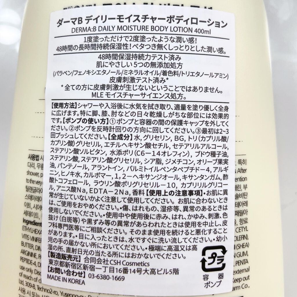 商品詳細情報Derma:B デイリーモイスチャーボディローション