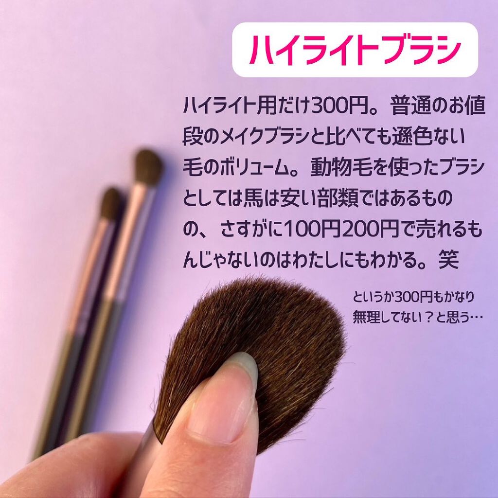DAISOごくふわシリーズから馬毛のメイクブラシが登場✨ダイソーの馬毛メイクブラシ好きとしては買わなくては!!と思いゲットしてきました🛒全7種類(私調べ)▶️ノーズシャドウブラシ▶️ポイントアイシャドウブラシ▶️細部アイシャドウブラシ▶️ブレ...