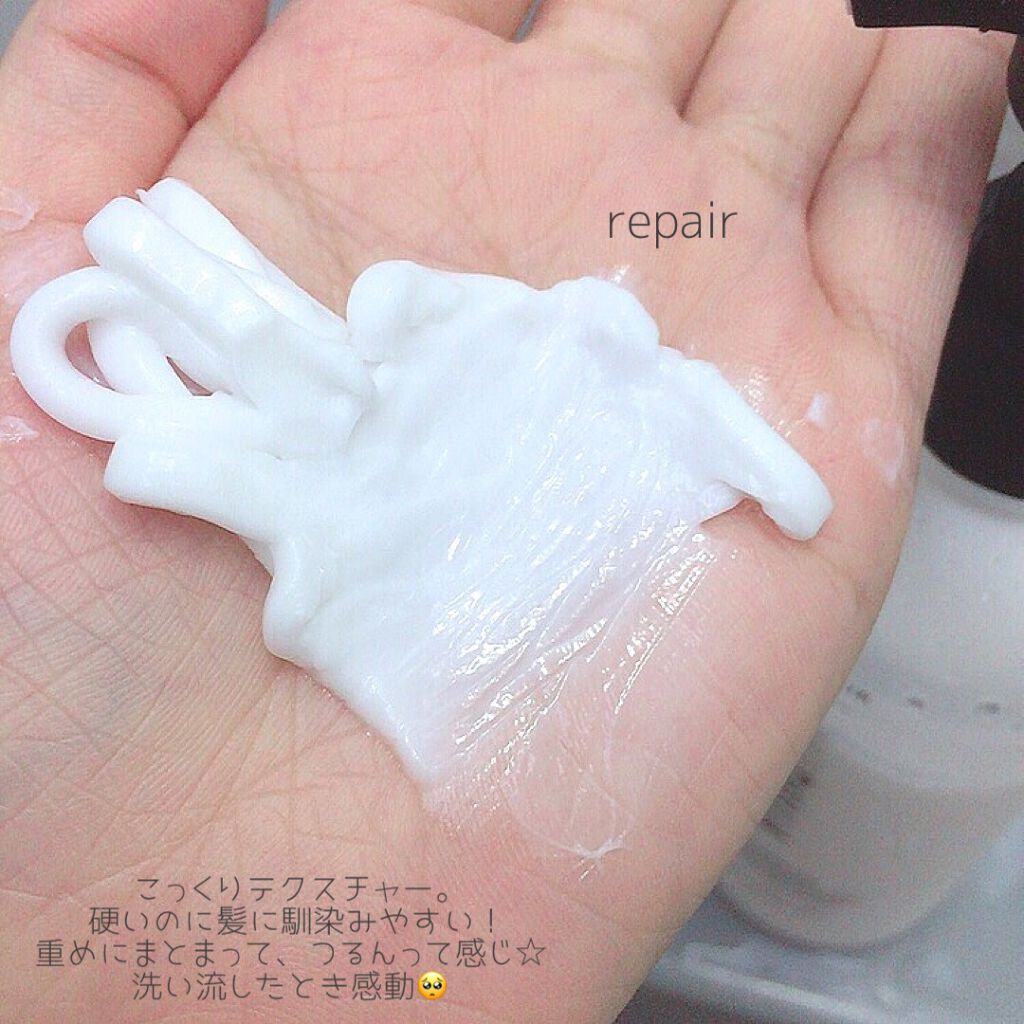 黄色のもったり濃厚なクリームテクスチャーで、髪に馴染みやすい😊 ふんわりホワイトフローラルブーケの香り💐 ピーチとピオニーのやさしい香りにレモンの爽やかな清潔感をプラスしてるそう。 洗い流しもしやすく、するんと質感でぬめりも感じにくいのが◎ しっとりサラッとした指通りのいい使用感で、重すぎず軽すぎずなのが私好み👍