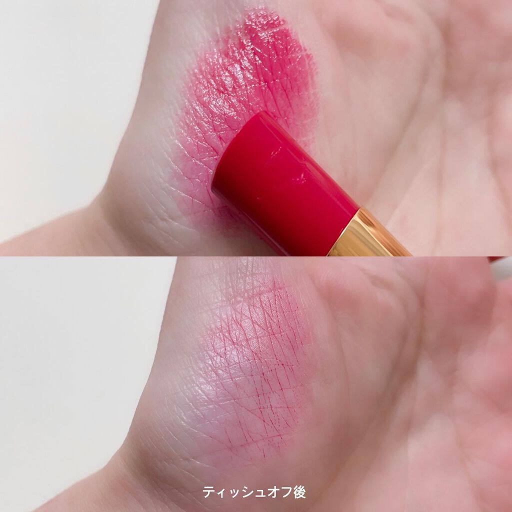 Diorらしいデザイン性の高いパケで見る人の心をくすぐるこちらのリップですが、可愛いデザインだけではなく使用感も良かったです😌🤍 肌の上にのせるとリップが溶けるように馴染んでくれ、保湿効果も高く感じました! ただ保湿効果も高い分マスクにつきやすいのが難点ですがそれは仕方ないですよね…😔 私が選んだカラーは今回のDiorのリップの中でも1番深みのあるカラーで、唇にのせるとかなりパープルに寄る印象です! ただ普段使いという面では向かないので、もしずっとポーチの中に入れて使いたいという方ならブルベ冬の方でももう少し柔らかいカラーの方が使いやすいかなと思います😌 カラー選びの反省点はあるのですが、こちらのカラーもすごく気に入ってるし何よりパケが可愛いのでずっと持ち歩くリップになると思います!