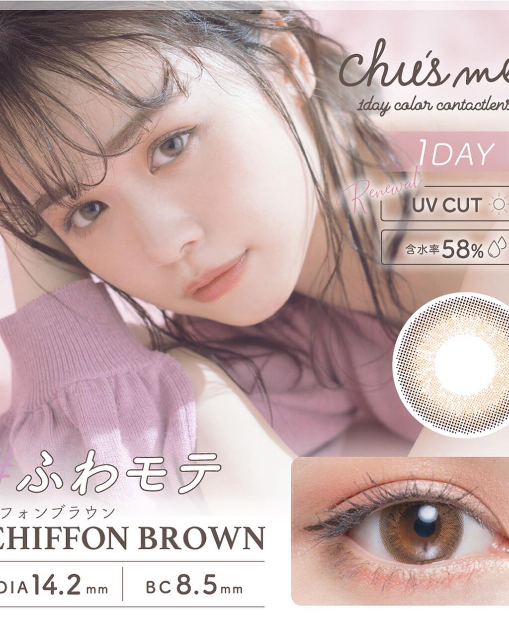ゆうこすプロデュースコンタクトレンズブランド「Chu's me」の新色 縁は薄くて瞳の中がキラキラとした生まれつき瞳の色素が薄いような発色になる! 色素の薄いベージュカラーに黒ふちがありくりっと瞳に!奥目大優勝レンズ♡
