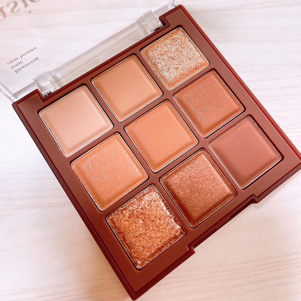 奥ゆかしいチョコレートブラウンムードを詰め込んだアイシャドウパレット🧸 色味はもちろん、アイシャドウが立体的になっていて、本物のチョコレートみたいな、見た目からして可愛い❣️ マットからラメ、グリッターまでバリエーション豊富な9色で、思いのままにアイメイクができる万能パレット🐰