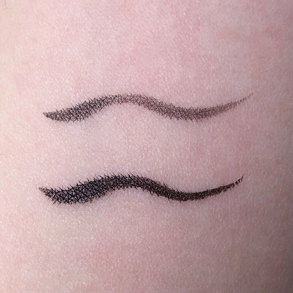 D-UP初のラメライナー✨️ 普段からD-UPのアイライナーを愛用してるので新色を試せるのはとても嬉しい!! ラメがハイライト効果になっているのかアイラインが明るく艶のある感じに見えます ブラウンだけど黄みも赤みも無くブルベでも使いやすいチャコールグレーのようなカラーなので、熟れた感じというか垢抜けて見える気がします✨️