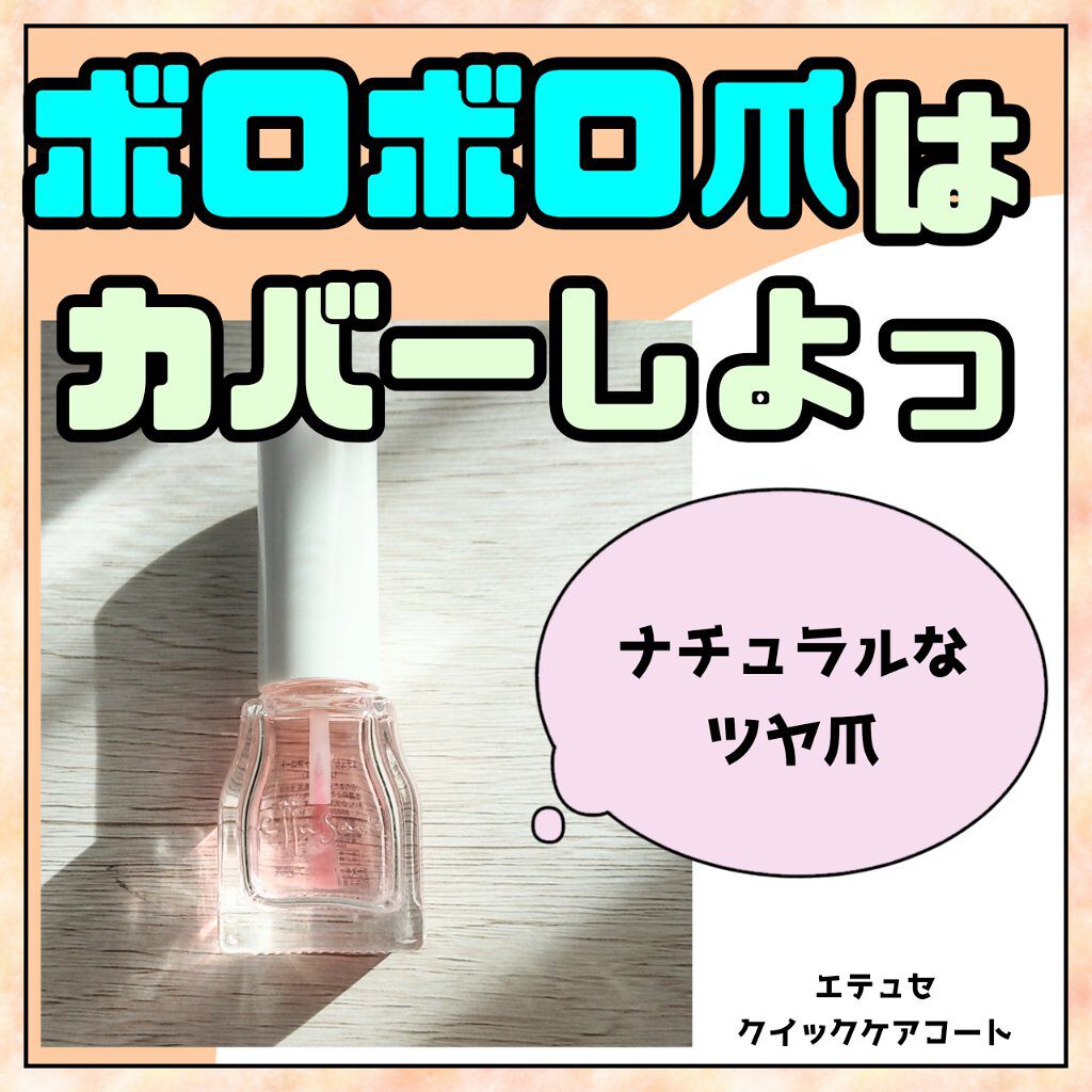 LIPSでの購入品です🩷エテュセクイックケアコート💅ネイルを連続でしていると、すぐに爪が割れたり、2枚になってしまったりの激弱爪なので、ネイルしていない時も綺麗な爪でいられるアイテムが欲しくて買ってみました🥰使っても爪割れる、という意見も読ん...
