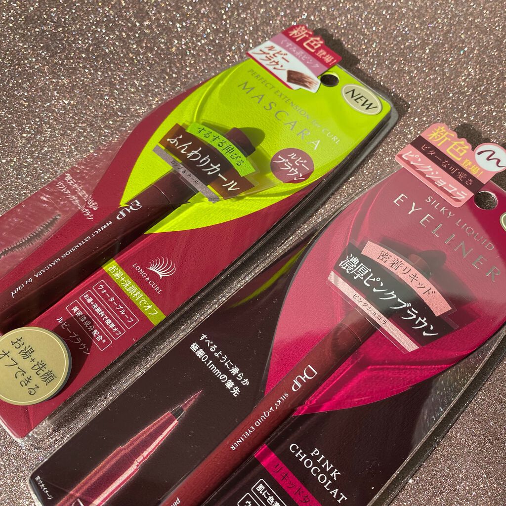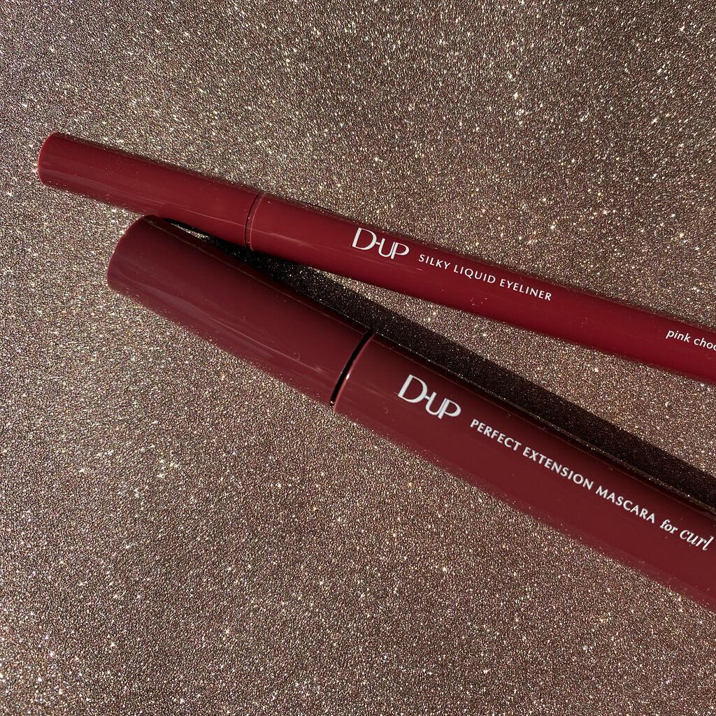 もはや日本のプチプラマスカラの代名詞とも言えるD-UPさんですが、普段カラーマスカラ派の私は初体験でした🔰 ✅美容液成分/ウォータープルーフ/お湯オフ♨️ 小ぶりなブラシで目が大きくない私でも塗りやすい!繊維入りだけど枝毛みたいにならなくて自然。 ほんのり赤みを感じるダークブラウンでちょっとレディな気分にしてくれる🍷