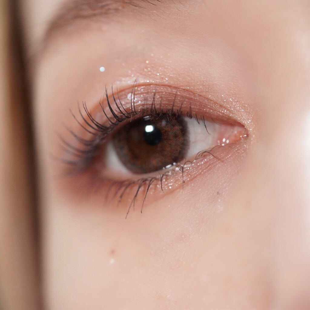 よくパレットのなかで明るいカラーをベースにまぶたに広く塗ることが多いのですが、パール感のあるカラーを避ける🙆♀️! パール感たっぷりの明るいカラーは涙袋に使うぐらい光を集めてぷっくり見せてくれるので、まぶたに広く使うと腫れぼったく見えがち😓 目元を明るくみせてくれたり、次に使うアイシャドウをぼかしやすくしてくれるけど、すっ飛ばしてメインのカラーを塗っちゃう✊🏻❤️🔥 涙袋にはたっぷり塗ってぷっくり見せる🙆♀️💕 シルキースフレアイズのマットタイプはすごく優れているな〜と感じました☺️💗 赤やオレンジなどは、入れすぎると腫れぼったく見えやすいので、見せたいカラーは下まぶた目尻にのせて色をたのしむ♡♡ パール感なしの透けマットだけじゃ物足りない… そう感じさせない華やかなラメが左上に入っているので黒目上と涙袋にのせるとすごく可愛い仕上がりに😍! 厄介な左右差のお陰でマットアイシャドウが好きになりました😌💕