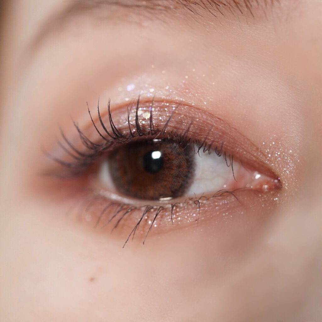マットなレッドブラウンと多色ラメ🤩!!✨マスカラはブラック×ブラウンで👀💕✨私の好きな組み合わせ\♡/"マット2色で簡単グラデーションをして指で多色ラメを重ねる❕✨涙袋には、小さめのチップで涙袋中央だけにちょん。たっぷりめにのせるのが好き😍💓...