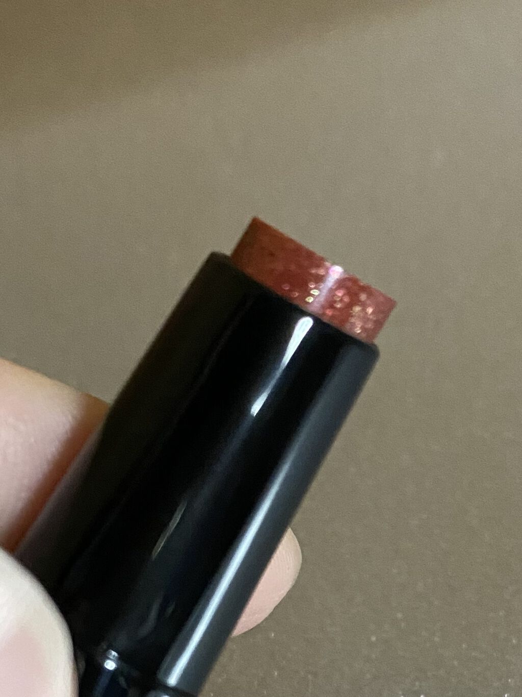 通常のリップモンスターと比べると本当にミニサイズ!!! 持ち運びには良さそう❢ 多色ラメがざっくざく!!!! でもラメがいっぱい入ってるので 唇に塗るとそのザラザラ感?ジャリジャリ感がめっちゃある😟 カラーはブラウン味が強めかな! ラメが入ってる分色の落ち方も汚い気がしました(´・ω・`) ラメだけ残る感じで乾燥も気になるかもー。