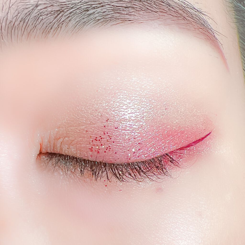 ピンクにグレージュも良いですね👌💗 今日は可愛らしい感じにしてみました💕 上下瞼黒目〜目頭側にラメを塗ってキラキラさせております🤩 目尻はマットのピンクを濃いめに重ねて💗 グレージュのアイライナーと相性◎