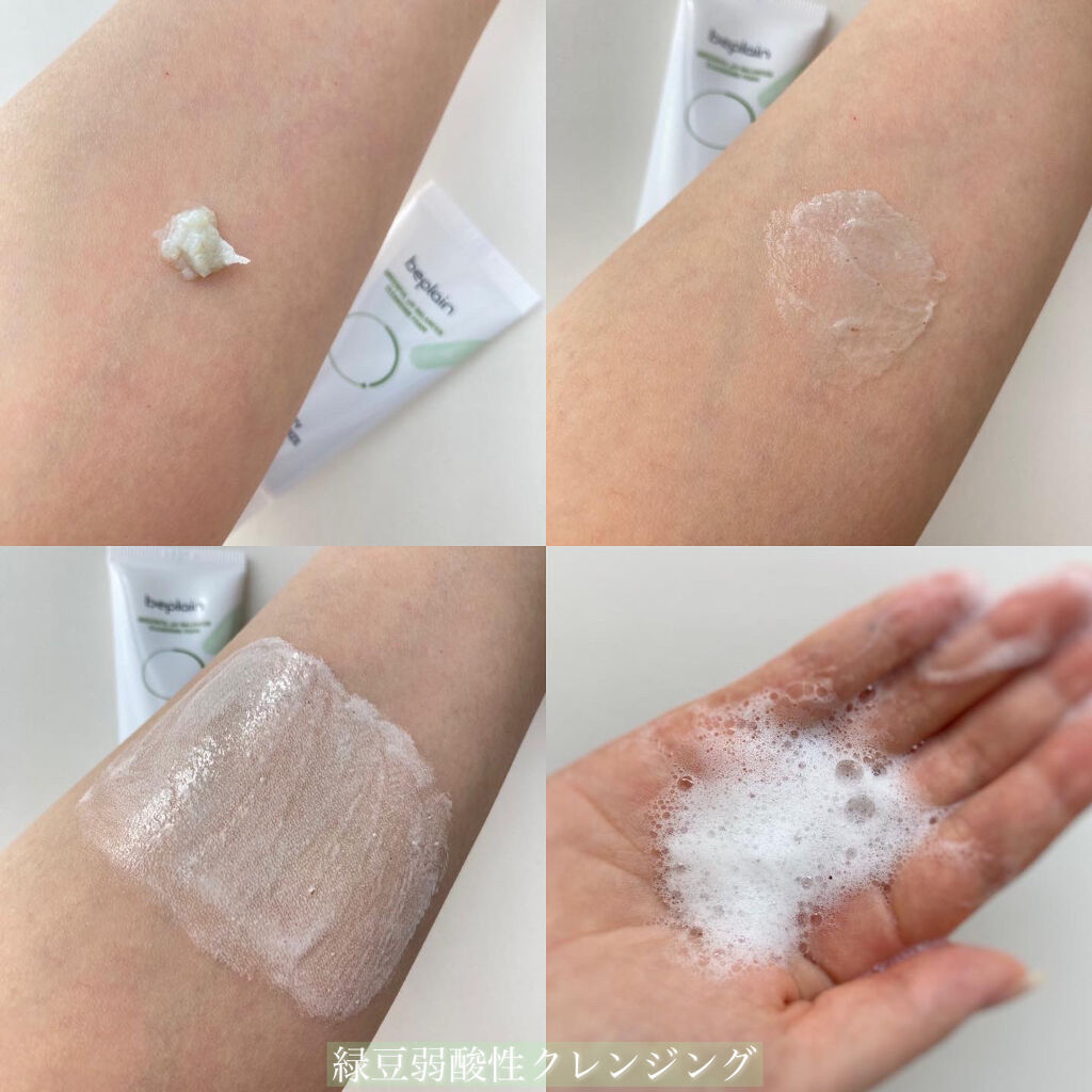 ✴︎beplain緑豆弱酸性洗顔フォームbeplainといえばこちらの洗顔!緑豆の粒子入りで、やさしいスクラブ効果もあるアイテムです。個人的に大好きでストックしているほど🥰優しい洗い心地でお気に入り!泡立てネットを使用してふんわりやわらかな泡...