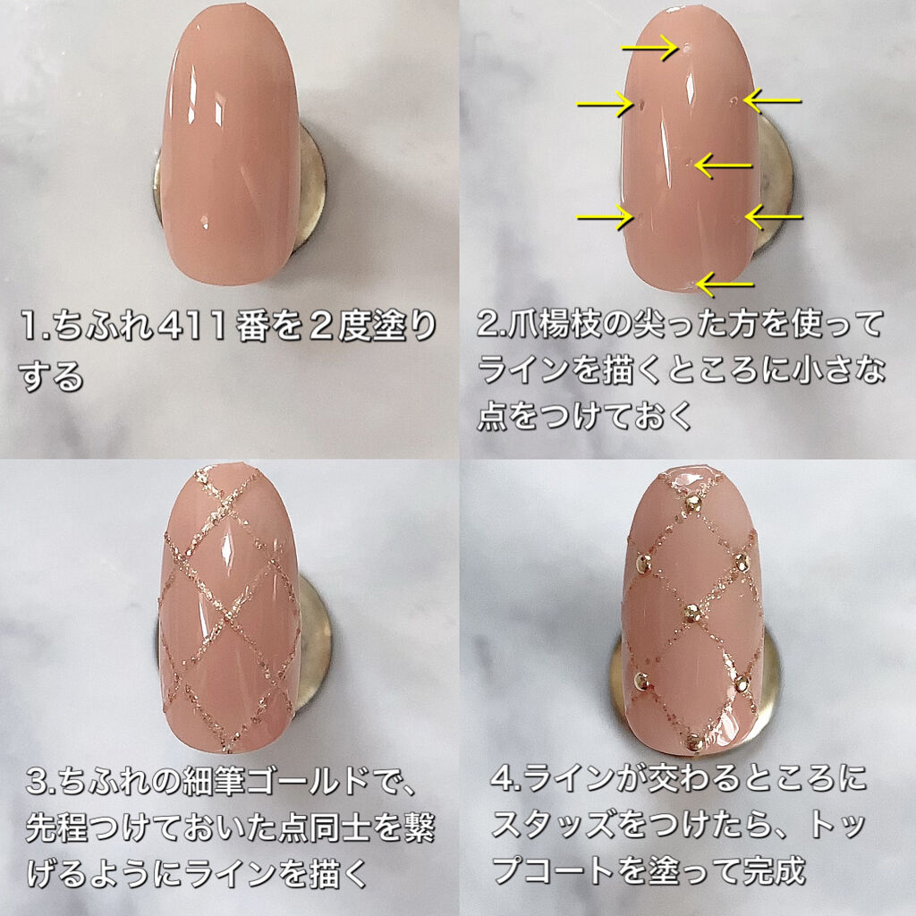 ワンカラーでも指ごとに色を変えるだけでオシャレに見えます💕 画像のようにゴールドラインとストーンを少し足すだけで華やかさがアップ🥰 何度かご紹介したことのあるスポンジで作るグラデーションです✨ スポンジを使うことで境目が綺麗に馴染んでくれます💕 アルミホイルの上でブラウンとトップコートを1:1くらいで混ぜたものを、トップコートのハケに取って3箇所に塗るだけ👌 事前に混ぜたものを塗ることで、爪の上でぼかすより簡単に出来ます💕 ベースカラーが乾く前に点置きしてぼかすことで綺麗にぼかせます✨ スピードが大事なので、使うポリッシュのキャップは全て開けておきましょう😊 天然石のラインはガタガタの方がより天然石っぽく見えるので、ラインを描くのが苦手な方でも大丈夫🙆♀️ 難しそうに見えて、やってみると意外と簡単に出来ます♡