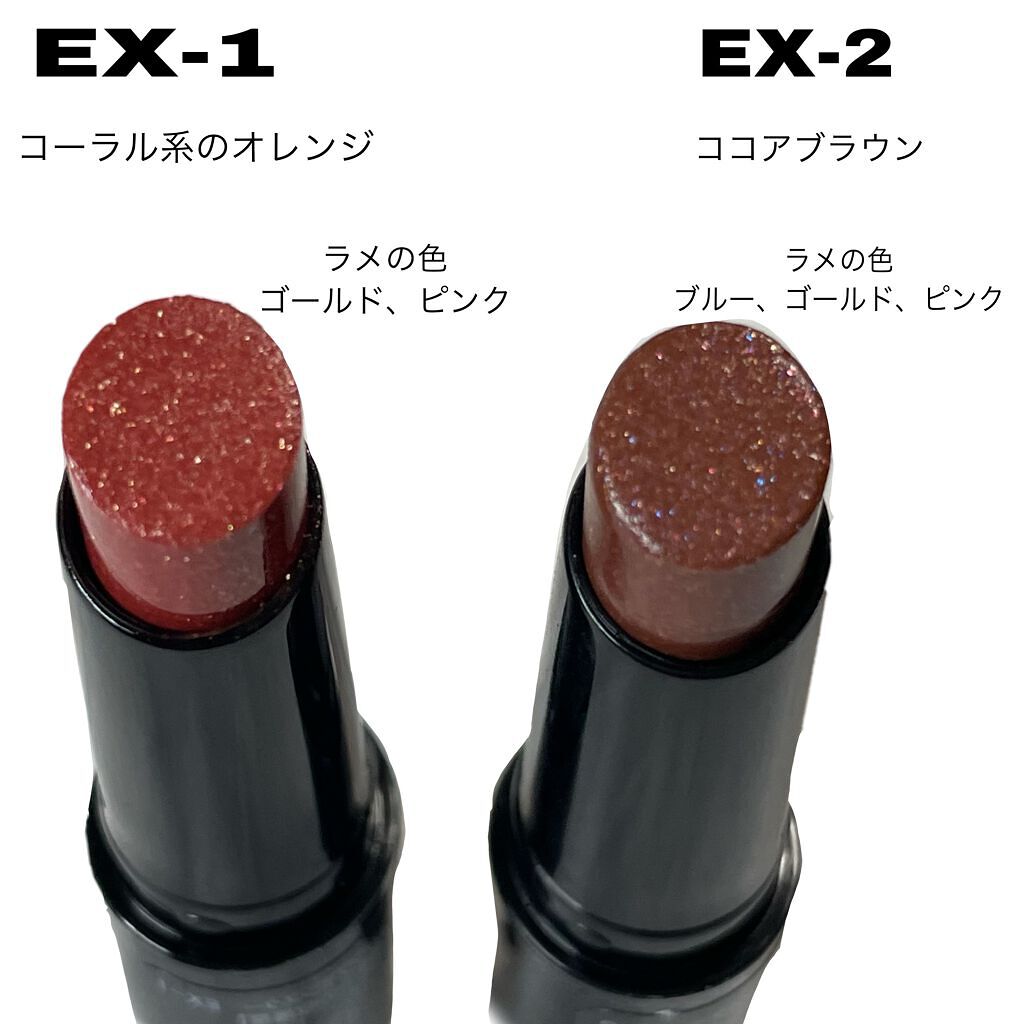 - <01 欲望の塊> テトライソステアリン酸ジペンタエリスリチル、トリ(カプリル酸/カプリン酸)グリセリル、オクチルドデカノール、ラウロイルグルタミン酸ジ(フィトステリル/オクチルドデシル)、ビスアルキル(C16-18)グリセリルウンデシルジメチコン、イソノナン酸イソトリデシル、水添ポリイソブテン、ラウロイルグルタミン酸ジ(オクチルドデシル/フィトステリル/ベヘニル)、パラフィン、合成ワックス、ダイマージリノール酸(フィトステリル/イソステアリル/セチル/ステアリル/ベヘニル)、マイクロクリスタリンワックス、水添マイクロクリスタリンワックス、ヒドロキシステアリン酸エチルヘキシル、トコフェロール、ホホバ種子油、オリーブ果実油、アーモンド油、(エチレン/プロピレン)コポリマー、ポリエチレン、ジメチコン、(+/-)(チタン/酸化チタン)焼結物、マイカ、ラウロイルアスパラギン酸Na、ラウロイルリシン、塩化亜鉛、酸化チタン、酸化鉄、水酸化Al、硫酸Ba、トリイソステアリン酸イソプロピルチタン、酸化スズ、ホウケイ酸(Ca/Al)、合成フルオロフロゴパイト、黄4、黄5、赤104(1)、赤201、赤202 <02 ピンクバナナ> テトライソステアリン酸ジペンタエリスリチル、トリ(カプリル酸/カプリン酸)グリセリル、オクチルドデカノール、ラウロイルグルタミン酸ジ(フィトステリル/オクチルドデシル)、ビスアルキル(C16-18)グリセリルウンデシルジメチコン、イソノナン酸イソトリデシル、水添ポリイソブテン、ラウロイルグルタミン酸ジ(オクチルドデシル/フィトステリル/ベヘニル)、パラフィン、合成ワックス、ダイマージリノール酸(フィトステリル/イソステアリル/セチル/ステアリル/ベヘニル)、マイクロクリスタリンワックス、水添マイクロクリスタリンワックス、ヒドロキシステアリン酸エチルヘキシル、トコフェロール、ホホバ種子油、オリーブ果実油、アーモンド油、(エチレン/プロピレン)コポリマー、ポリエチレン、ジメチコン、(+/-)(チタン/酸化チタン)焼結物、マイカ、ラウロイルアスパラギン酸Na、ラウロイルリシン、塩化亜鉛、酸化チタン、酸化鉄、水酸化Al、硫酸Ba、トリイソステアリン酸イソプロピルチタン、酸化スズ、ホウケイ酸(Ca/Al)、合成フルオロフロゴパイト、黄4、黄5、赤104(1)、赤201、赤202 <03 陽炎> テトライソステアリン酸ジペンタエリスリチル、トリ(カプリル酸/カプリン酸)グリセリル、オクチルドデカノール、ラウロイルグルタミン酸ジ(フィトステリル/オクチルドデシル)、ビスアルキル(C16-18)グリセリルウンデシルジメチコン、イソノナン酸イソトリデシル、水添ポリイソブテン、ラウロイルグルタミン酸ジ(オクチルドデシル/フィトステリル/ベヘニル)、パラフィン、合成ワックス、ダイマージリノール酸(フィトステリル/イソステアリル/セチル/ステアリル/ベヘニル)、マイクロクリスタリンワックス、水添マイクロクリスタリンワックス、ヒドロキシステアリン酸エチルヘキシル、トコフェロール、ホホバ種子油、オリーブ果実油、アーモンド油、(エチレン/プロピレン)コポリマー、ポリエチレン、ジメチコン、(+/-)(チタン/酸化チタン)焼結物、マイカ、ラウロイルアスパラギン酸Na、ラウロイルリシン、塩化亜鉛、酸化チタン、酸化鉄、水酸化Al、硫酸Ba、トリイソステアリン酸イソプロピルチタン、酸化スズ、ホウケイ酸(Ca/Al)、合成フルオロフロゴパイト、黄4、黄5、赤104(1)、赤201、赤202 <04 パンプキンワイン> テトライソステアリン酸ジペンタエリスリチル、トリ(カプリル酸/カプリン酸)グリセリル、オクチルドデカノール、ラウロイルグルタミン酸ジ(フィトステリル/オクチルドデシル)、ビスアルキル(C16-18)グリセリルウンデシルジメチコン、イソノナン酸イソトリデシル、水添ポリイソブテン、ラウロイルグルタミン酸ジ(オクチルドデシル/フィトステリル/ベヘニル)、パラフィン、合成ワックス、ダイマージリノール酸(フィトステリル/イソステアリル/セチル/ステアリル/ベヘニル)、マイクロクリスタリンワックス、水添マイクロクリスタリンワックス、ヒドロキシステアリン酸エチルヘキシル、トコフェロール、ホホバ種子油、オリーブ果実油、アーモンド油、(エチレン/プロピレン)コポリマー、ポリエチレン、ジメチコン、(+/-)(チタン/酸化チタン)焼結物、マイカ、ラウロイルアスパラギン酸Na、ラウロイルリシン、塩化亜鉛、酸化チタン、酸化鉄、水酸化Al、硫酸Ba、トリイソステアリン酸イソプロピルチタン、酸化スズ、ホウケイ酸(Ca/Al)、合成フルオロフロゴパイト、黄4、黄5、赤104(1)、赤201、赤202 <05 ダークフィグ> テトライソステアリン酸ジペンタエリスリチル、トリ(カプリル酸/カプリン酸)グリセリル、オクチルドデカノール、ラウロイルグルタミン酸ジ(フィトステリル/オクチルドデシル)、ビスアルキル(C16-18)グリセリルウンデシルジメチコン、イソノナン酸イソトリデシル、水添ポリイソブテン、ラウロイルグルタミン酸ジ(オクチルドデシル/フィトステリル/ベヘニル)、