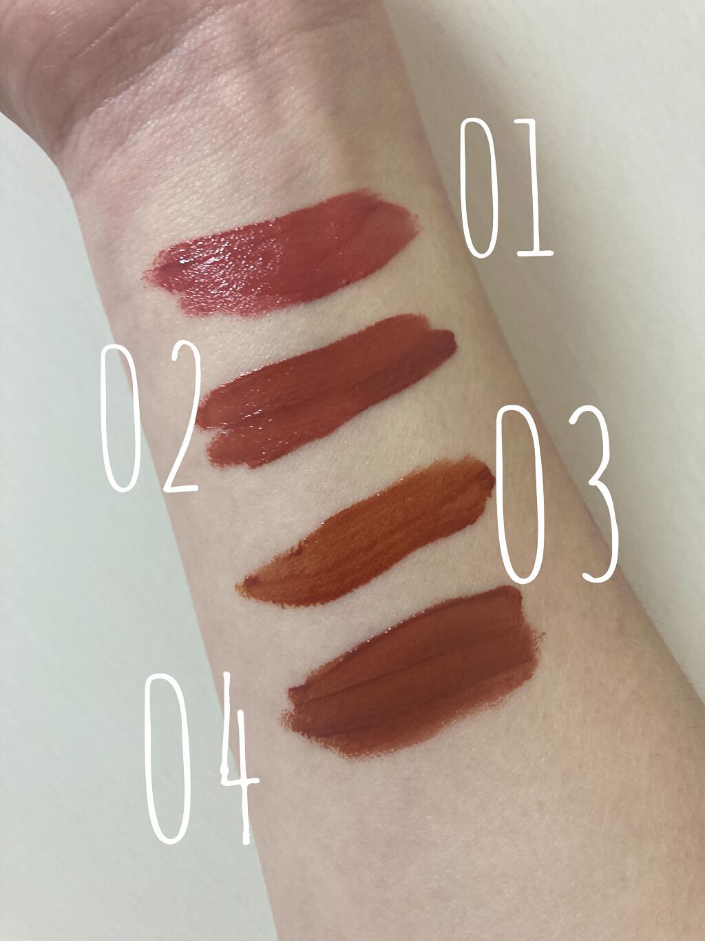 色味は、マットで秋っぽいカラーです(*^^*) 今の季節にピッタリですねっ! さらに、伸びが良く、少し付けただけでも綺麗に塗ることが出来ました✨ ブルベ、イエベの方どちらもが使えると思います!! また、ジューシーラスティングティントのEATdotoriのカラーと比較してみたところ、パッと見似ていますが、うるうるな唇にはジューシーラスティングティントを、今のご時世マスク必見という感じなので、マスクに着きたくない!という方は、ゼロベルベットティントもオススメです! ティッシュOFFをした所、あまり取れませんでした!