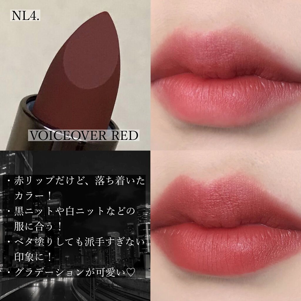 | 唇の上では透けるような発色で肌馴染みが良いのが特徴です👏 | 詳細を見る | ||