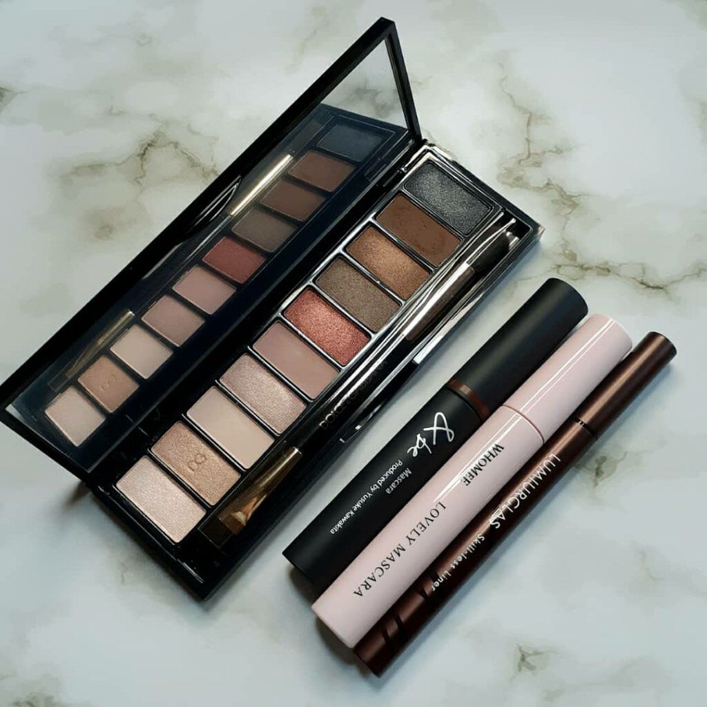 このパレットのお気に入りのカラーは、下段の2色🧡 発色も良く、綺麗にまぶたに色が乗ります❗ 下段真ん中のプラムカラーを目尻のキラから囲むように付けてます😊 パレット真ん中のピンク メタリックは、黒目の真ん中に指で上から重ねました💓 下まぶたの涙袋にも付けて、キラキラさせてます❗ マスカラとアイライナーは、どちらもダスティ ピンクのニュアンスカラー💗 アイカラーを目立たせたいのと、ピンクメイクでバレンタインを意識してみました😘❤