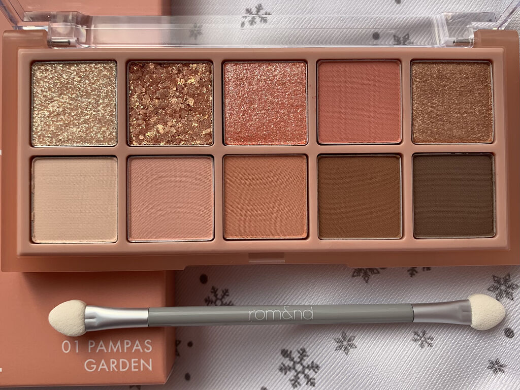 ロムアンド(rom&nd)ベターザンパレット#01パンパスガーデン🌸🌸アイシャドウ。このパレット使いやすいし好き🥰ラメも使いやすい。発色も良いです。粉質も良かった👍🥰#Qoo10メガ割rom&ndベターザンパレット01パンパスガーデンPAMP...
