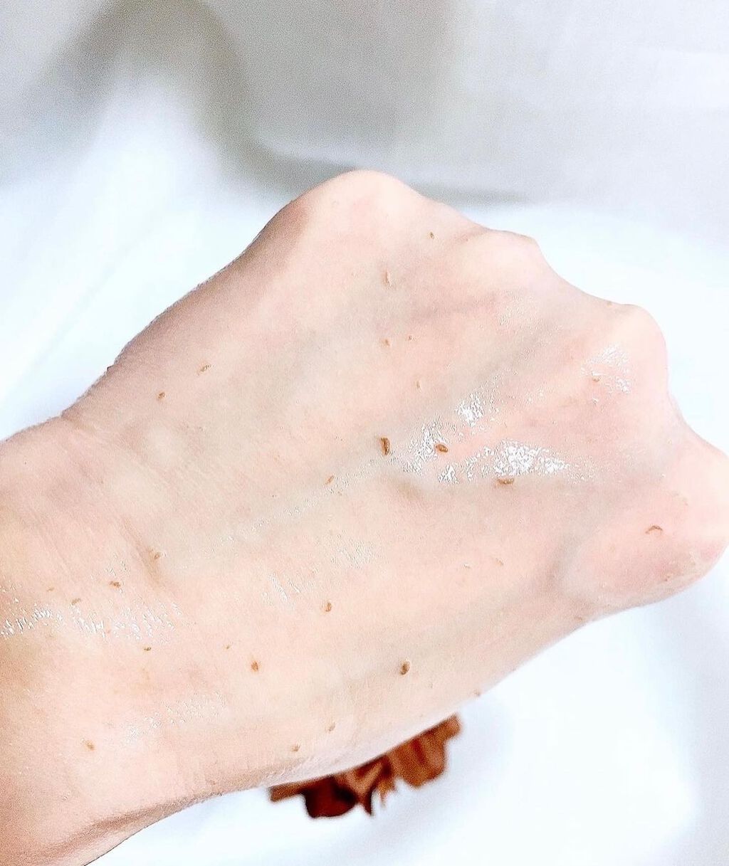 自然由来成分で肌荒れ防止 ・肌が乾燥して角質が多い方 ・荒れた肌のキメで化粧ノリが悪い方 ・敏感肌で低刺激のピーリングを使用したい方 ・ツヤ感のあるなめらかな肌が欲しい方 ほんのり優しい甘すぎない香りのジェル。 濡れた肌にも使えるけど乾いた肌の方がいいみたい! しばらくクルクルすると少しずつポロポロしてきます。 洗い流した後はツッパリ感もなくスベスベに。 顔だけでなく全身に使えるので気になる肘やかかとにも◎