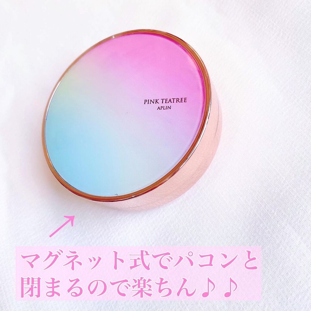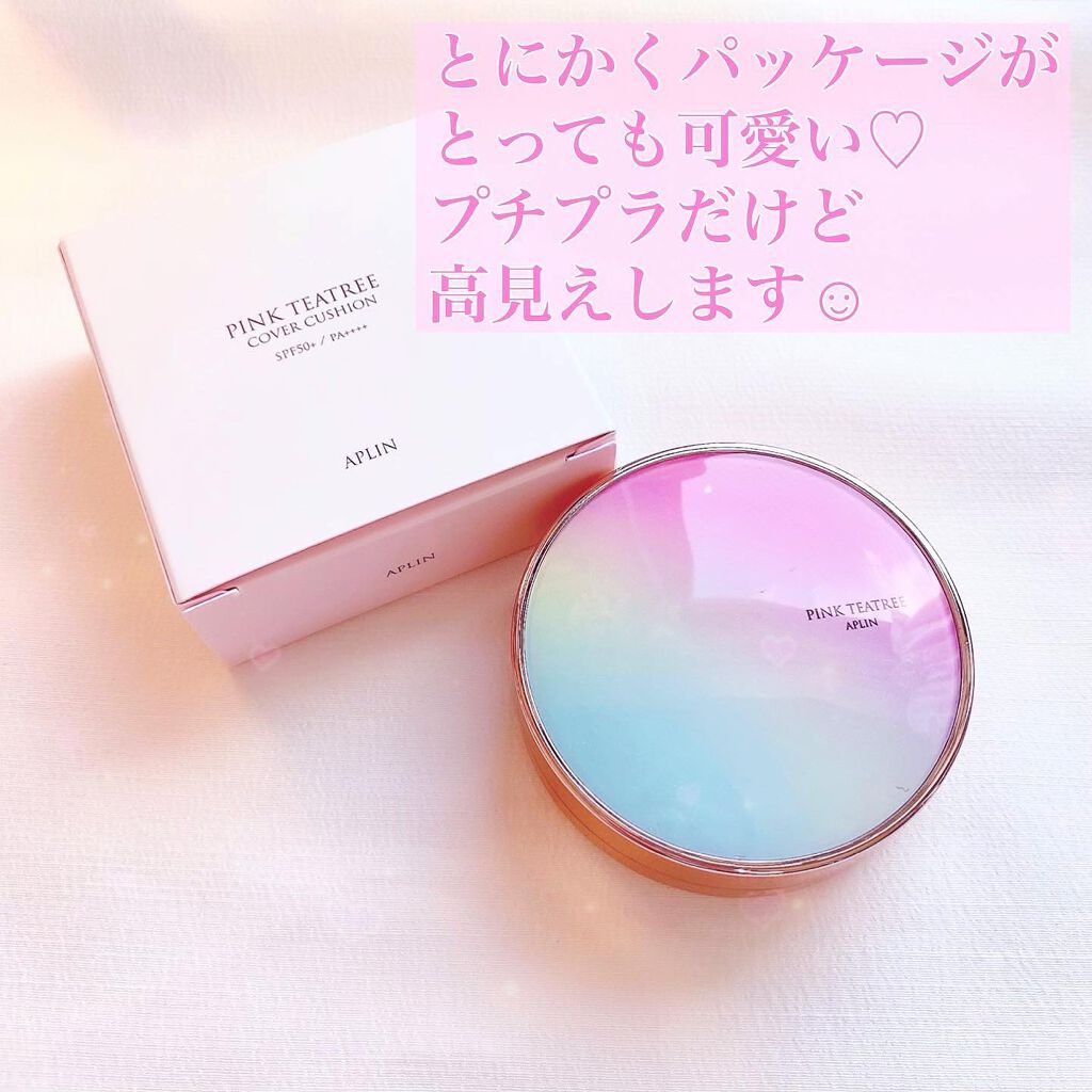 APLIN ピンクティーツリーカバークッション 21号ライトベージュ 2,490円(税込) 少量でよく伸びてハイカバー! 赤みやくすみをしっかりカバ一できるのに、厚塗り感のないなめらかな仕上がり♡ ハイカバーなのにナチュラルなツヤ感とサラッとしつつ、乾燥崩れしにくい仕上がりに感動します!!